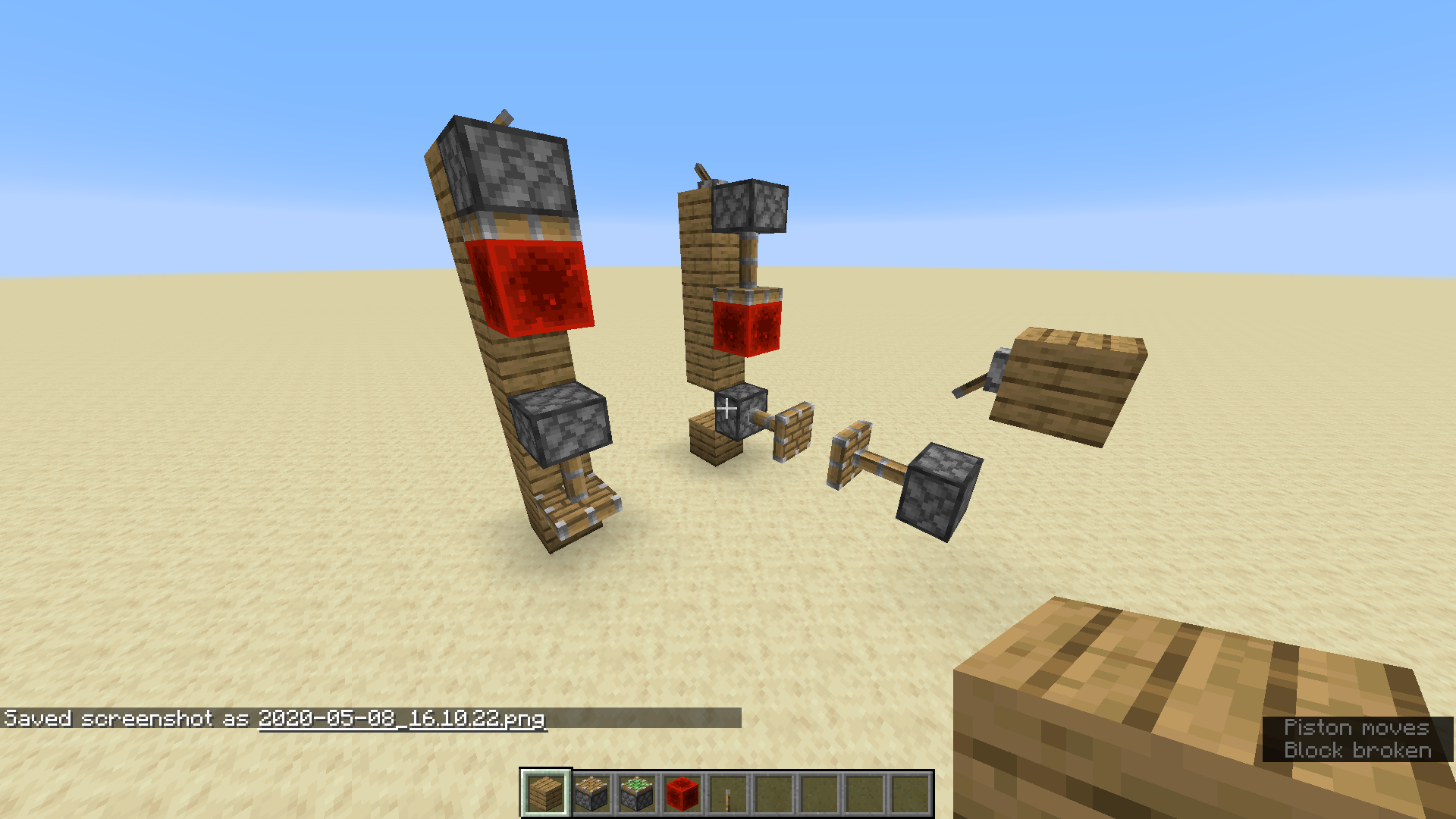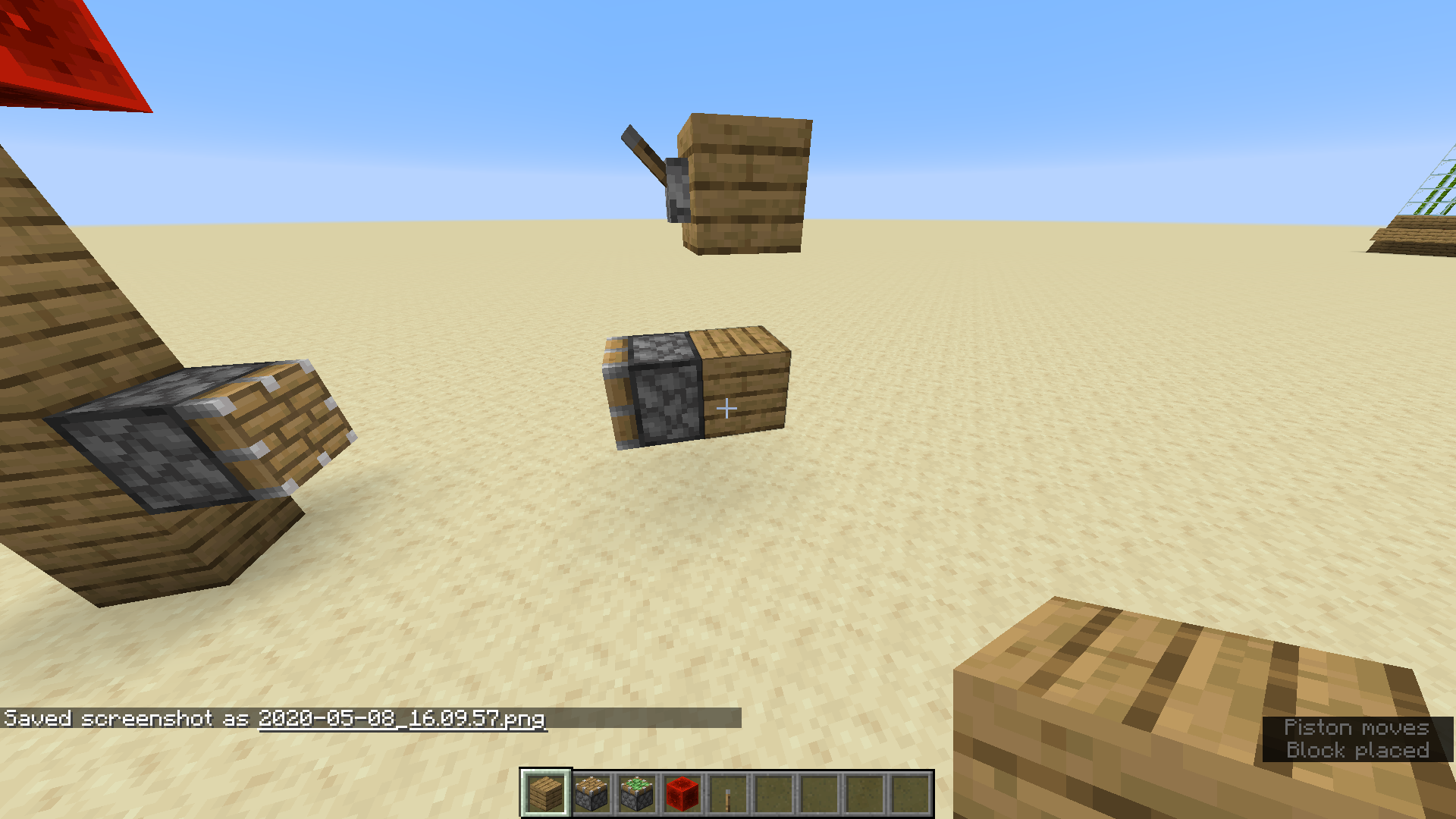 If a power source block is placed above a piston/ sticky piston with one block space between them, and the piston is updated via placing a block next to it, it will extend and will remain extended even if the power source is removed. The piston will then only retract if it is updated again.