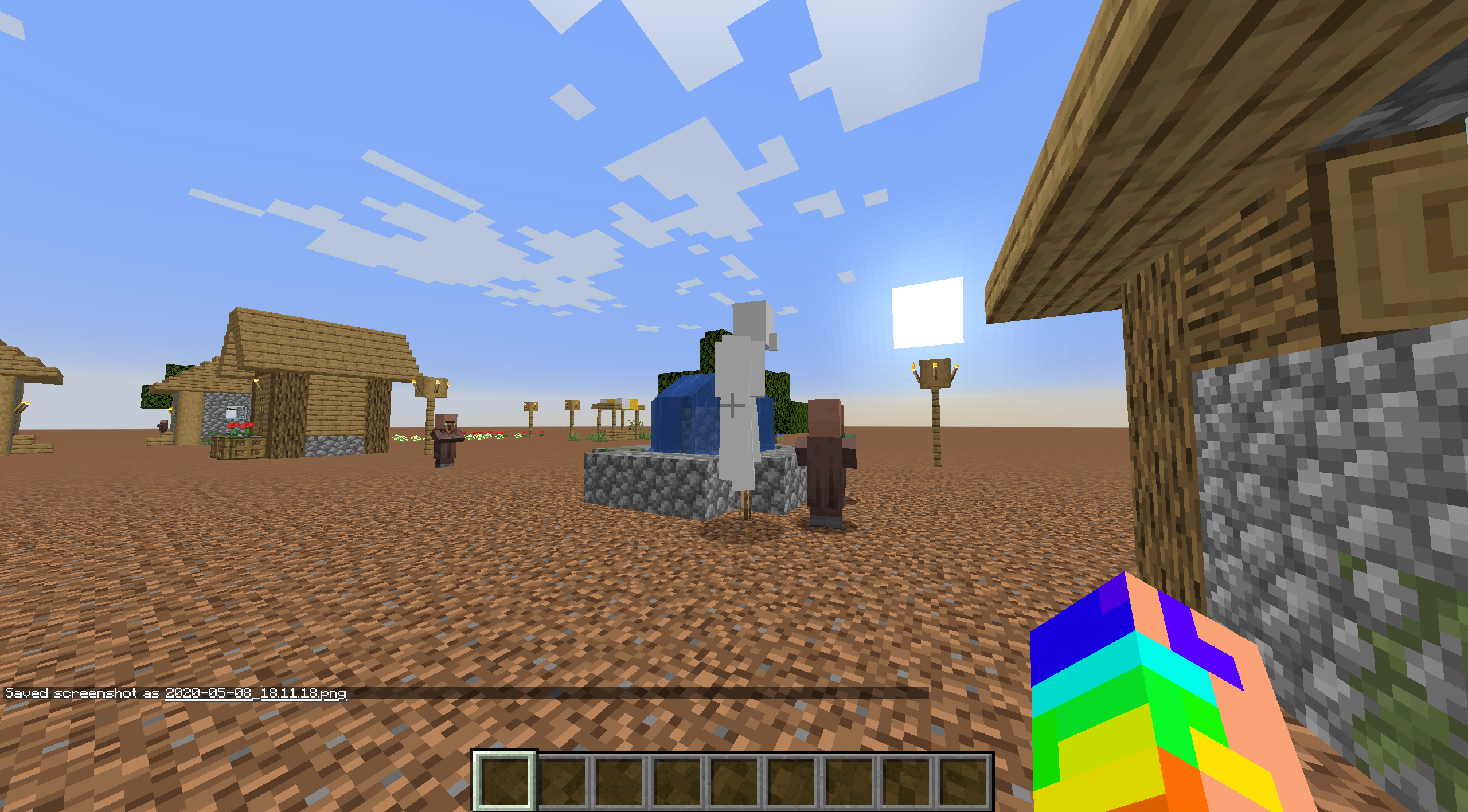 Upon loading a custom superflat world (1 layer of dirt, plains, stronghold and village structures, seed 1), the iron golem texture disappeared.