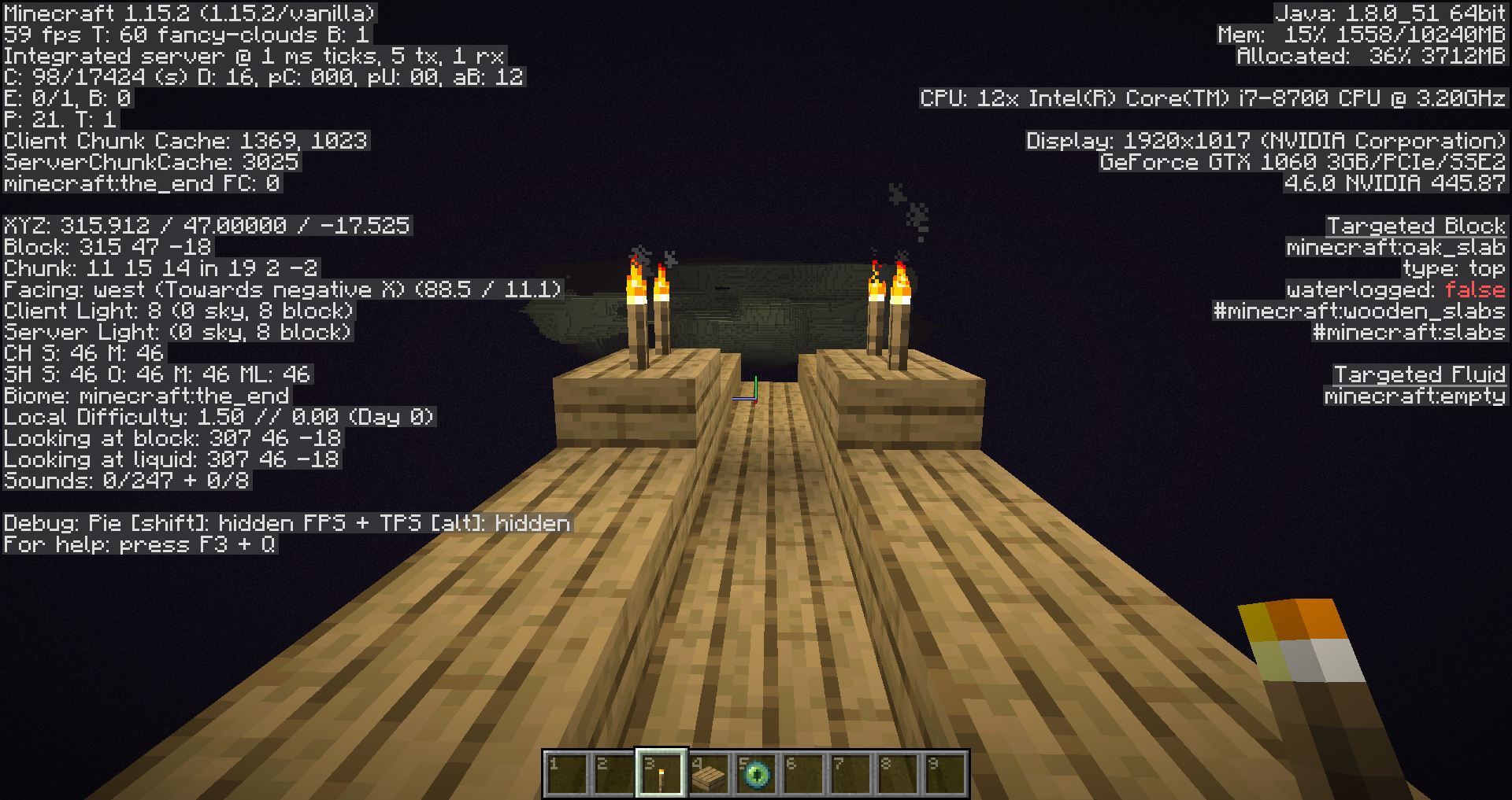 When placing 4 torches next to each other (As shown in the picture below) do not have the proper lighting. The gap inbetween them does not recive any light! Also, in this picture you might see something called "Sigma", that is hack client and I use it.