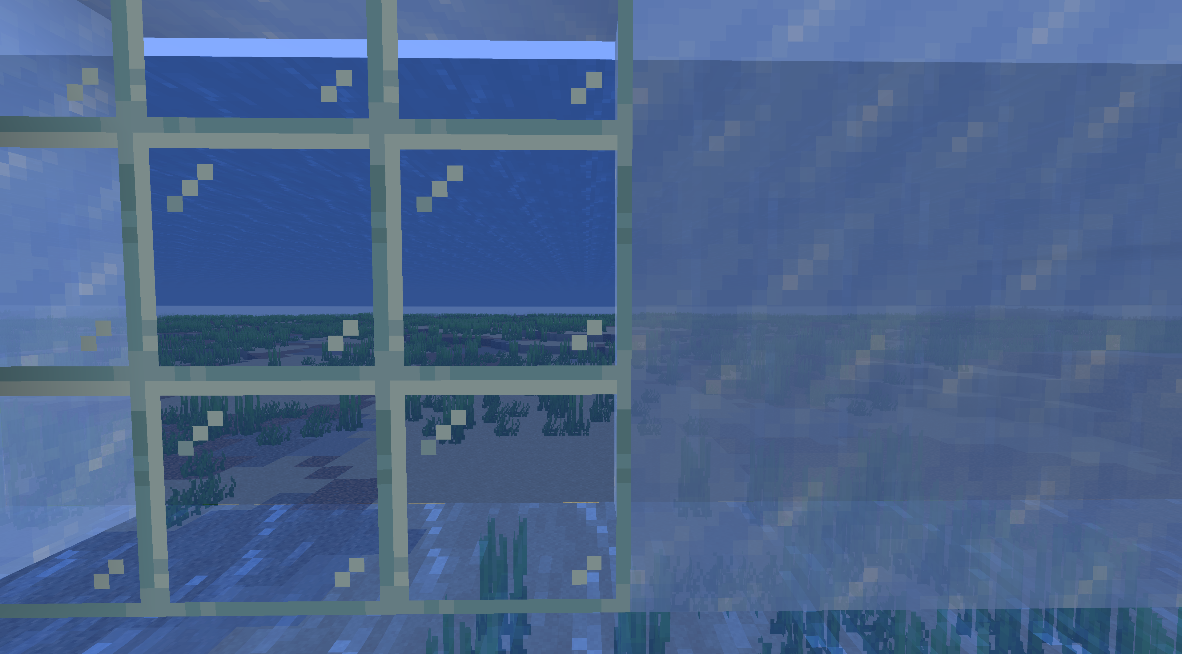 The water flowing texture appears when water and ice are next to each other. Examples compared with glass which does not have the flowing water texture next to it