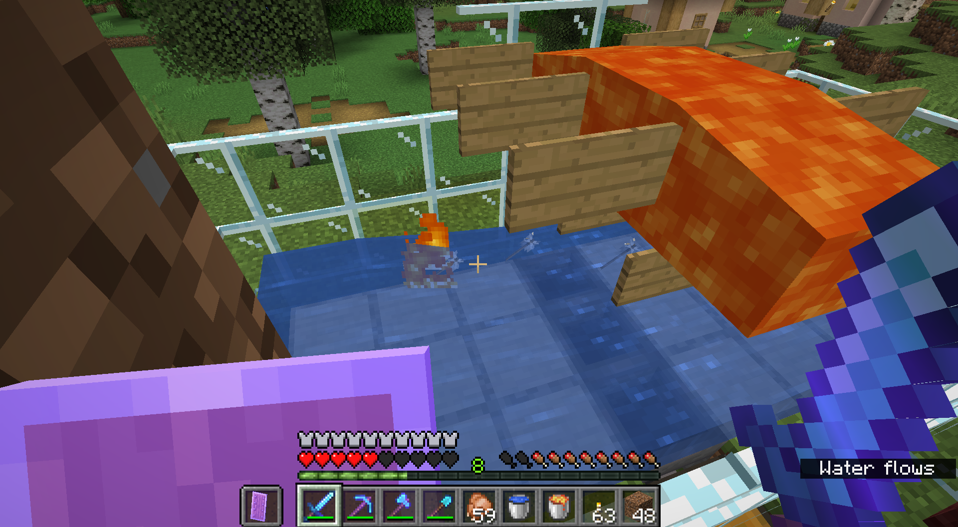 I was killing some golems from my iron farm with an arrow, and occasionally I missed and it went through the lava and into the water. In the water, it continued burning.