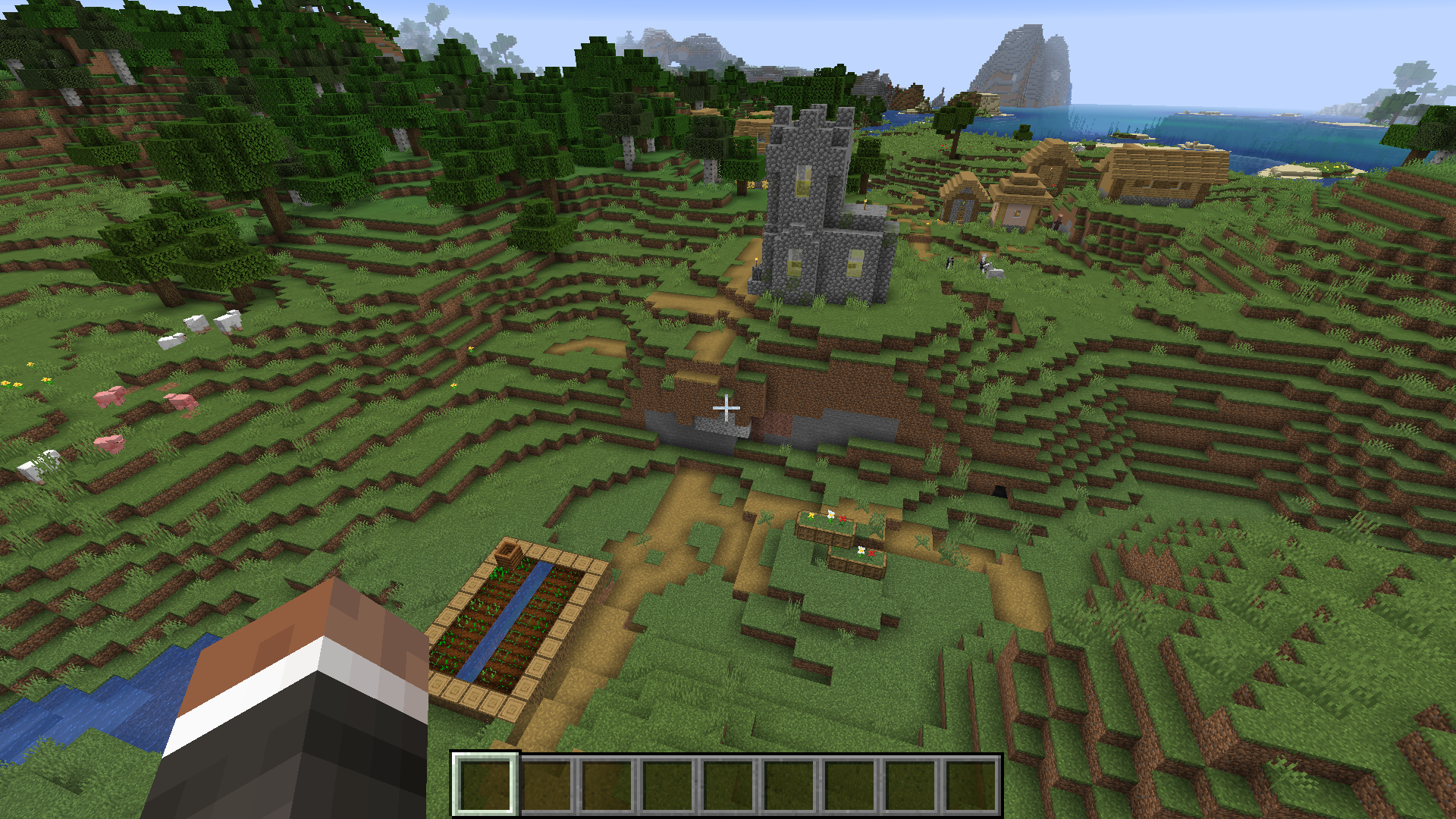 Villages will oven generate over hills, mountains, and other unfriendly terrain that no reasonable person would ever build their home in. This happens often (though not exclusively) when a village bleeds into another biome, but I have reported that issue in a separate bug report. This happens to every type of village, though it is most frequent in taiga villages, as they have the most mountainous terrain. This bug could either be seen as villages generating where they shouldn't, or villages not generating properly to adapt the terrain at hand.