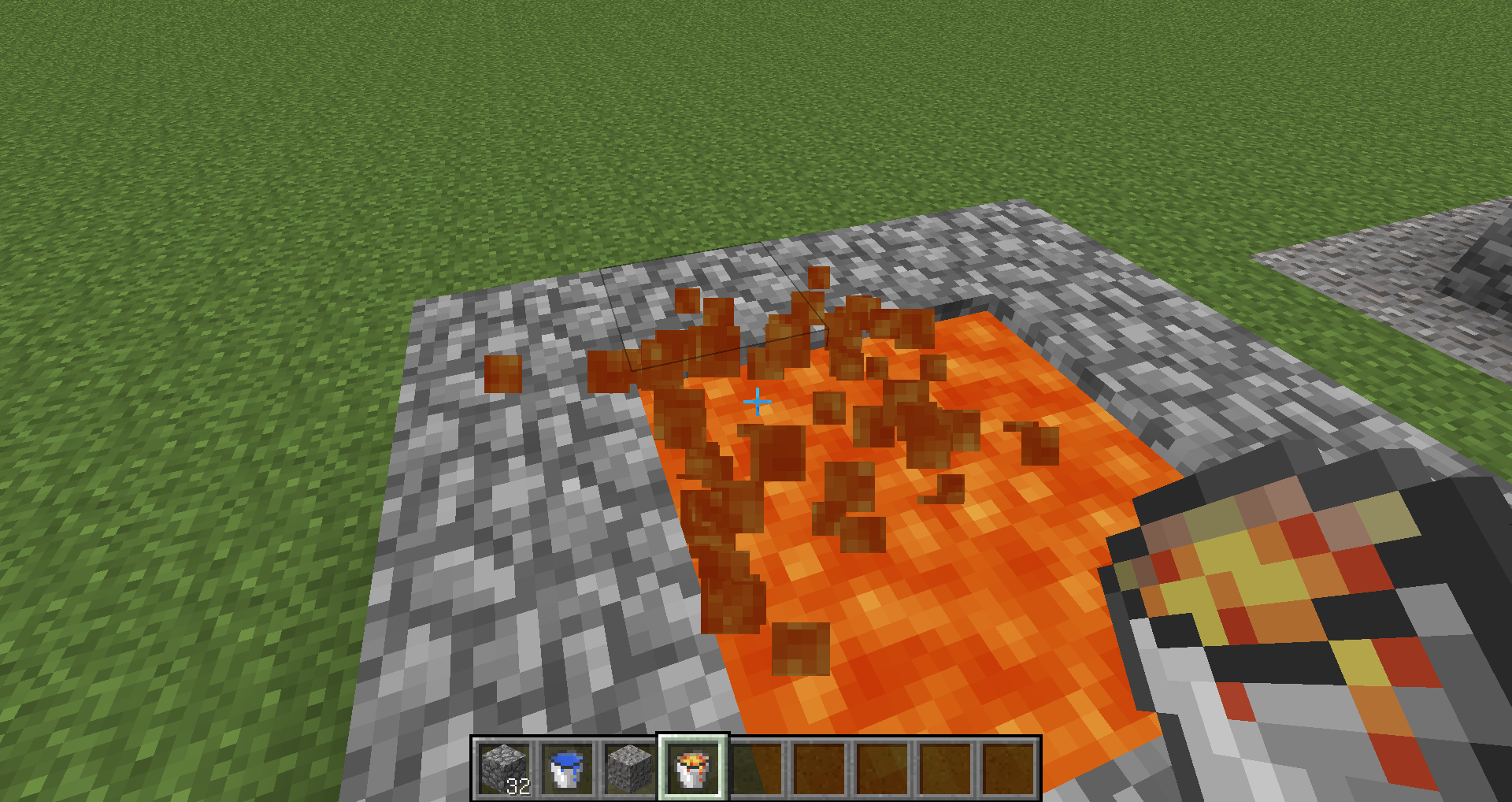 there is a bug of the placement of the water when a water source is placed on another it sounds like a broken rock and there are water particles.same for the lava.