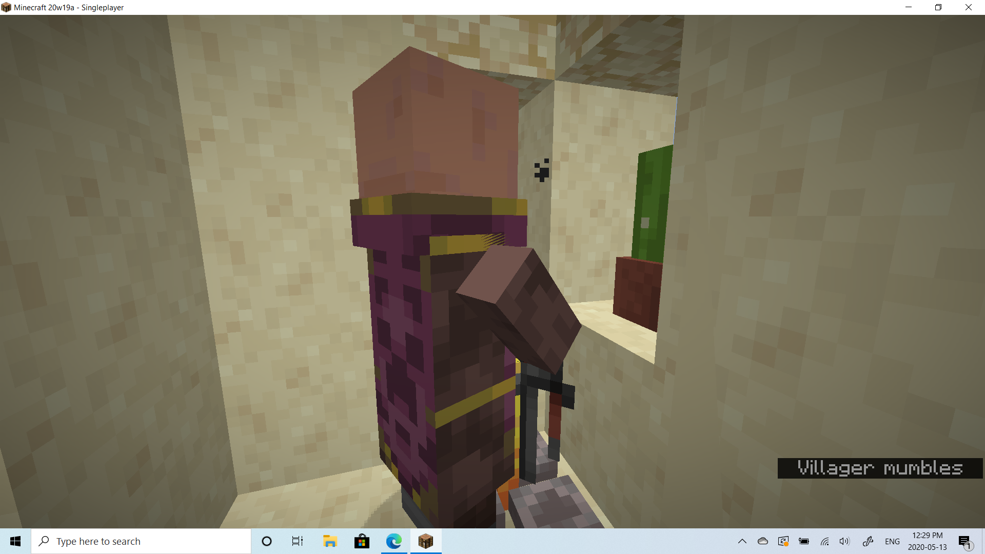 Cleric Villagers have the bottom of their face covered with its clothes, right? But if they are looking straight ahead and move around, you can see some purple and yellow having some Z-fighting on the sides of the villager. This does not happen when the villager is looking down, or you are still.