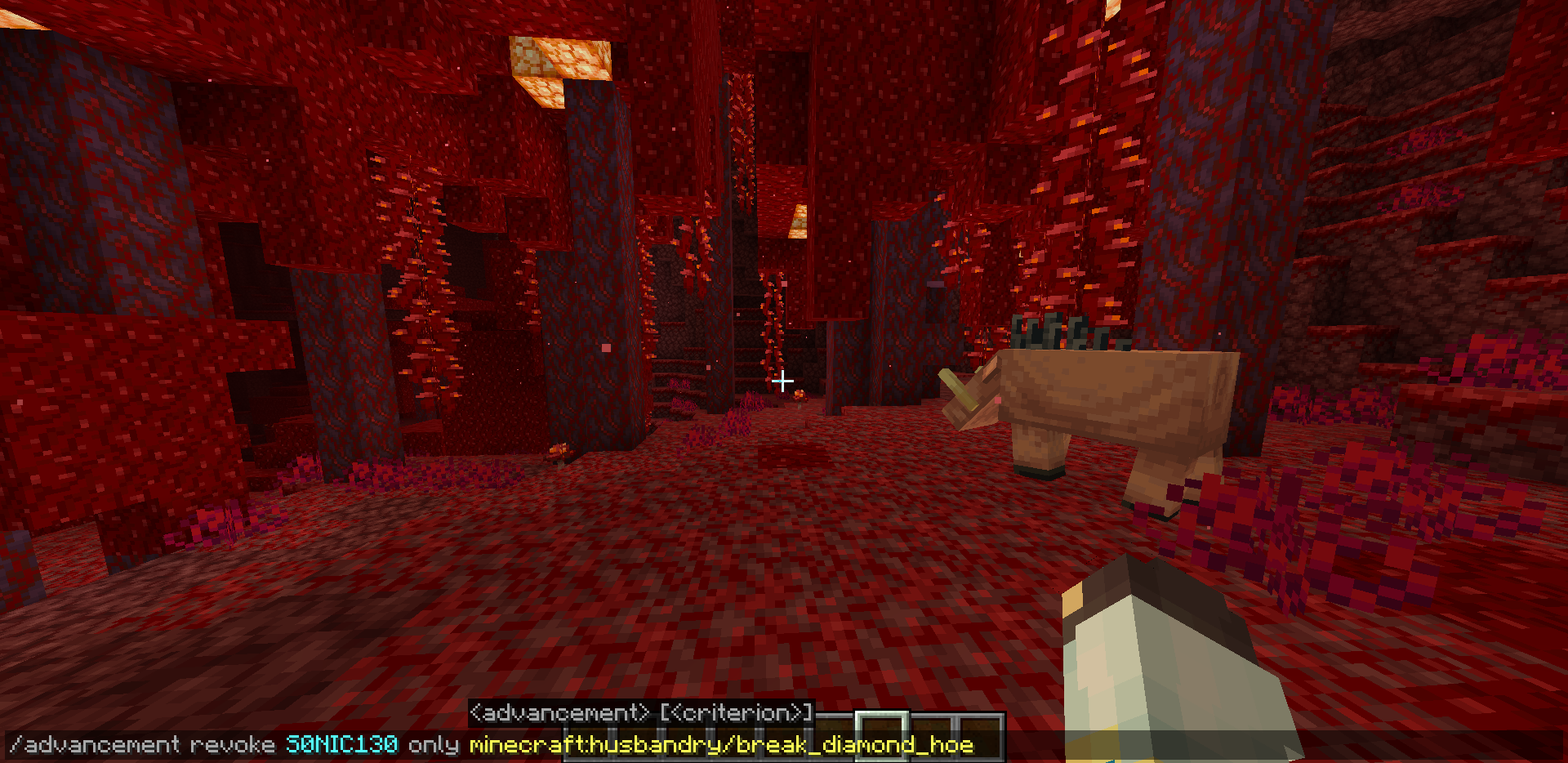 In the Cheat menu, the name for the advancement "Serious Dedication" is set as "break_diamond_hoe", but in 20w_20a the advancement was changed to obtaining a Netherite Hoe instead of breaking a diamond one.