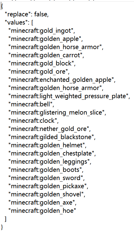 minecraft:golden_horse_armor has been written twice in piglin_loved item tag.
