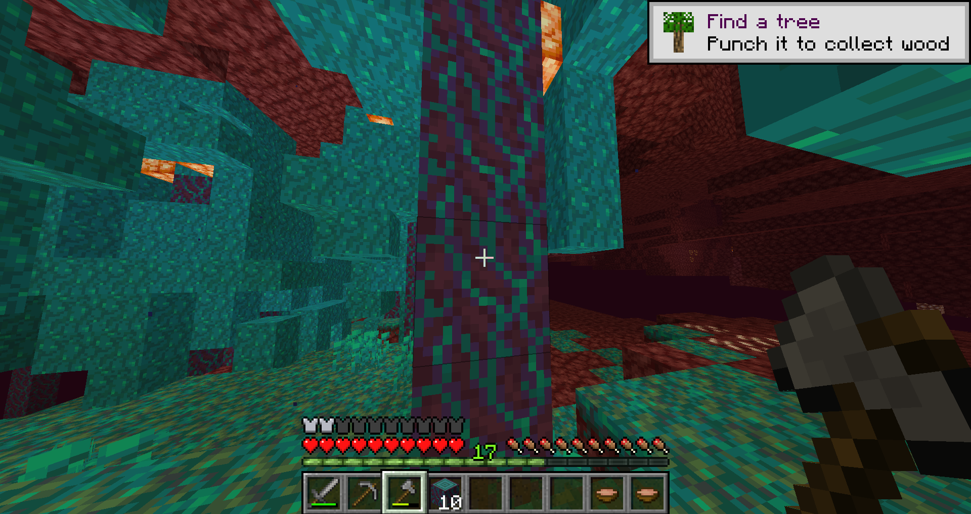 2. Go to the nether before completing the "Punch a tree" tutorial prompt