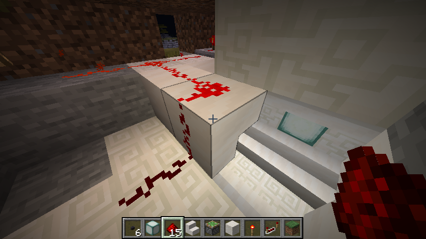 I was making a piston door when I put a Line of Redstone on the bottom of some stairs. I then placed Redstone dust next to the stair, and it wasn't powered