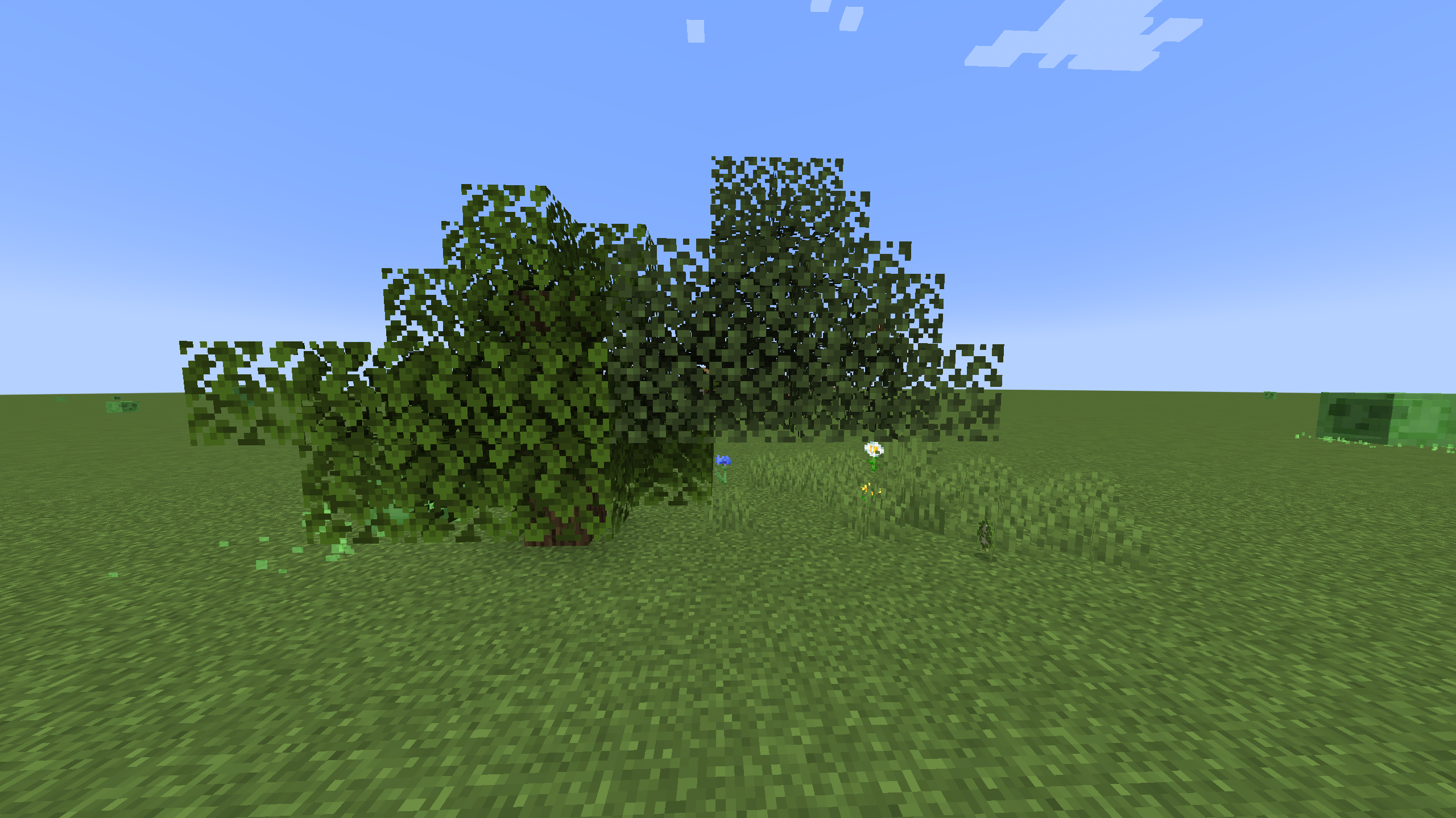 The leaves have a distance value, meaning the leaves connected to the log of a different type. This is most obvious in normal gameplay when the player is chopping down trees in a forest, and leaves are left floating next to trees of a different kind, like so: