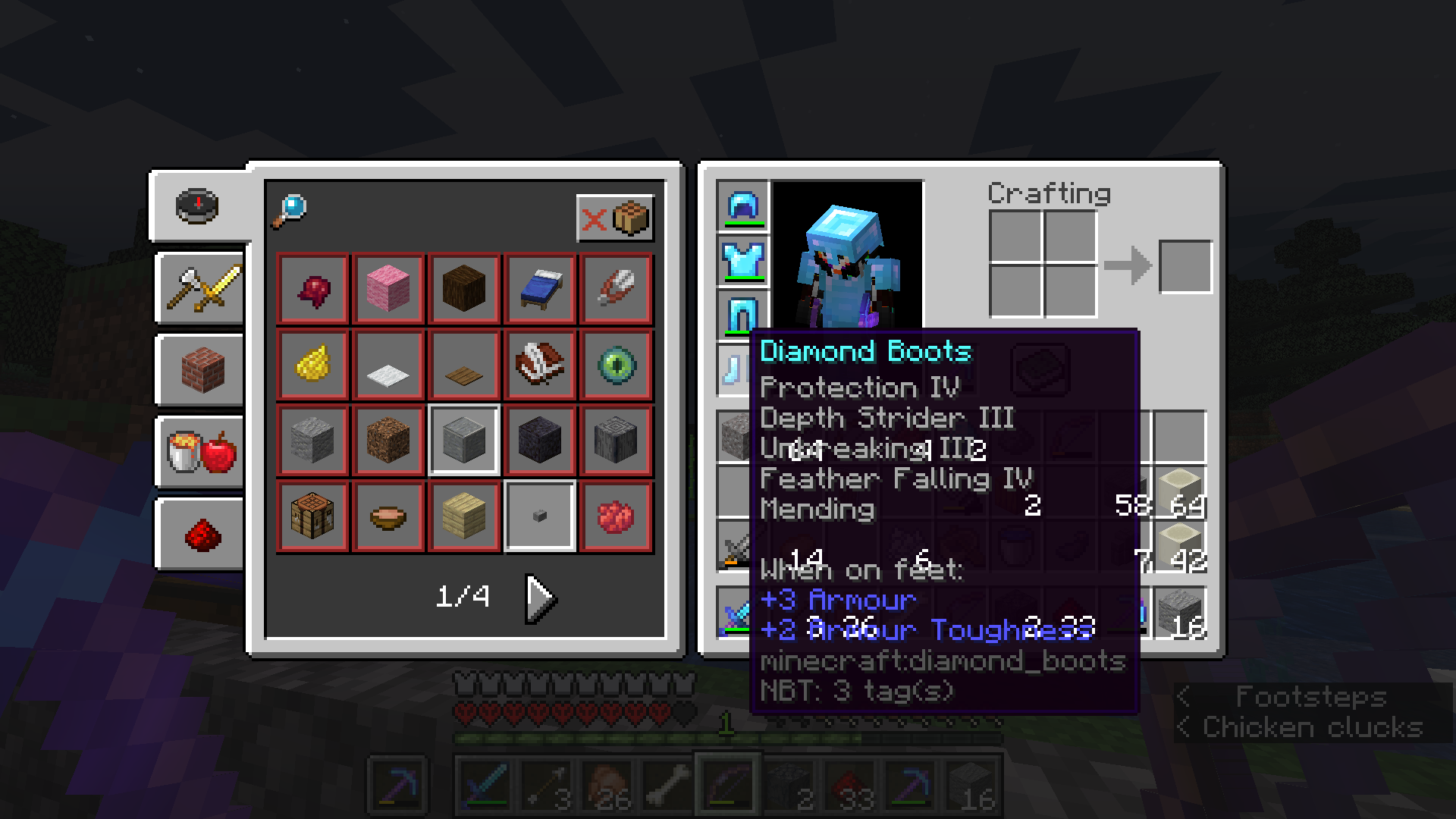 Not very important but, when in inventory the item amount (eg. 1-64) number overlaps the item information (enchantments, durability etc) when hovering above said item. Below is an image displaying this.