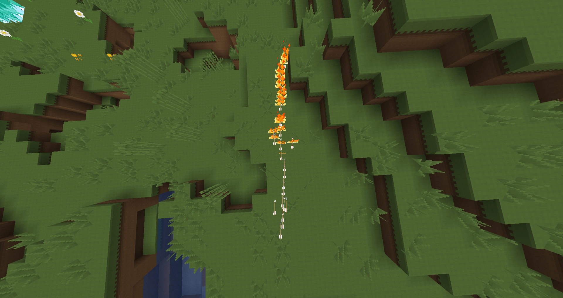 Arrows, when shot through lava or with a Flame bow, will display fire only on the front side. That's fine. But whenever being overhead from the arrows, the fire will display only on the "front" side and not when being "behind" the arrows. The attached pic shows it better. All of those arrows have the fire entity on them, but you can't really see that.