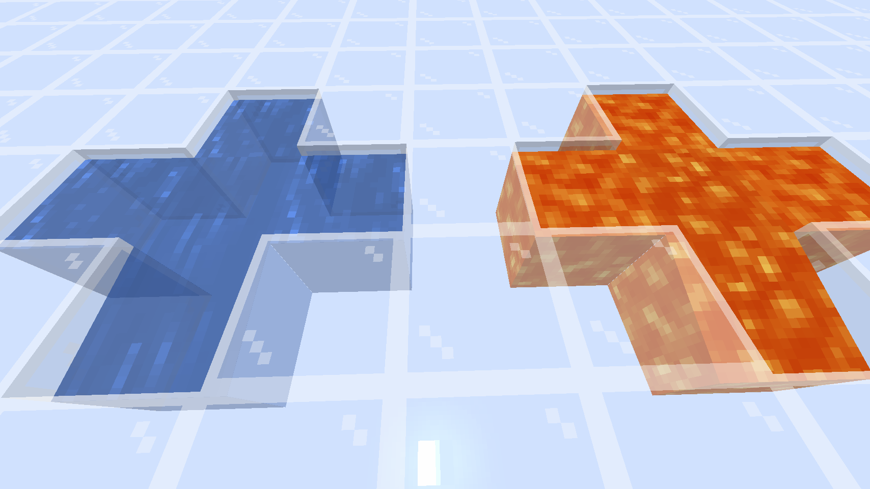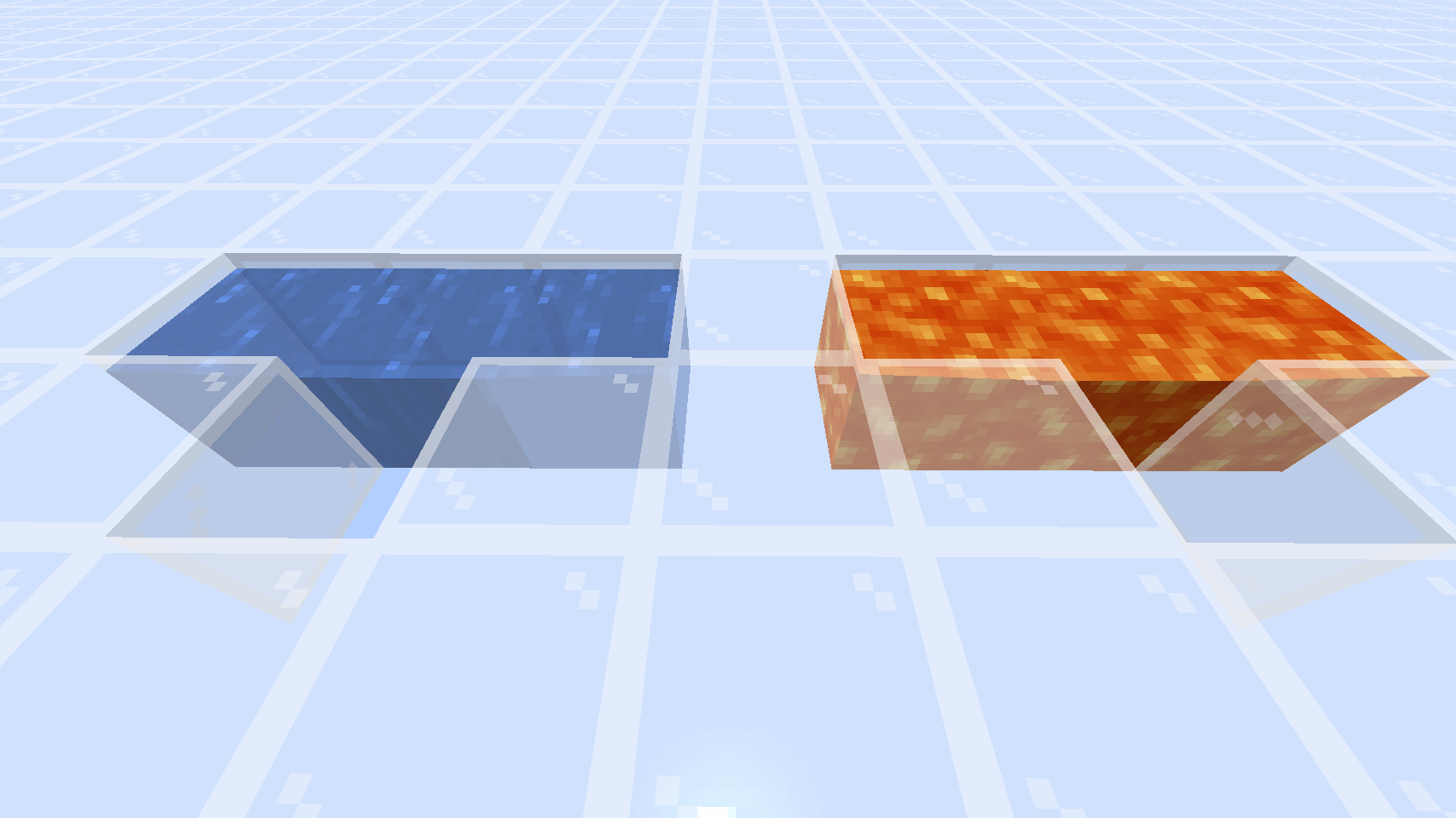 → ✔ Liquid flowsPlace lava/water in an "I" shape, and break a block to make a "T" shape