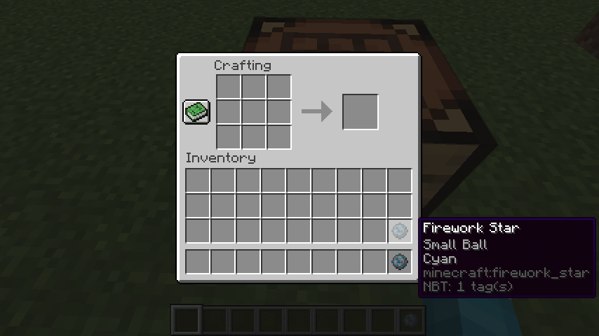 2 gunpowder + 2 cyan dye + 1 wither skeleton skull