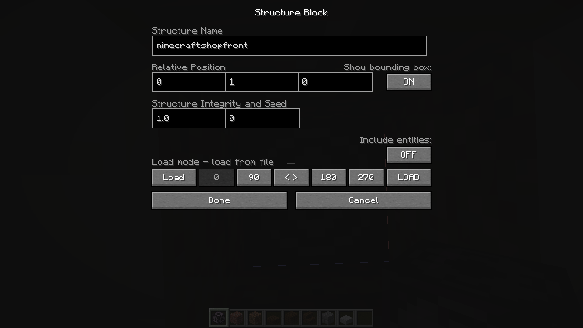 I use structure blocks very frequently, and I had put in my usual settings, saved, loaded and for some reason this time the loaded structure was without slabs, stairs, doors and trapdoors, maps, fences, item frames, lanterns and glass panes. Unusually, in my opinion, only half of the signs were still present, and my customised signs had no text. As seen in one of the pictures, I tried a setup with stairs straight afterwards, but it worked as intended.