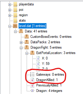 I just defeated the dragon in my survival world, but no gateway generated. I went in a circle 96 blocks from 0,0 at Y=75 (like Gamepedia suggested), but couldn't find any. I decided to look at the level.dat file, and it said that there is no gateway generated. I attached an image of it below.