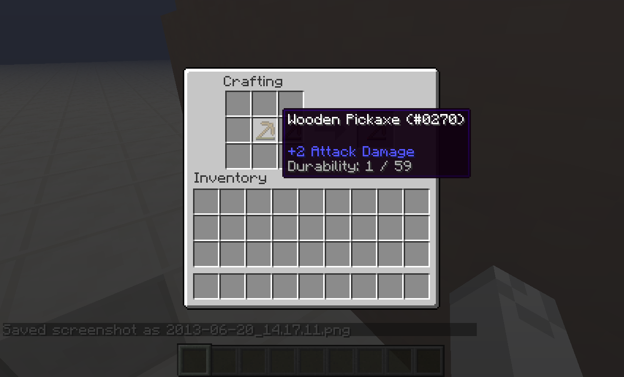 Wood Pickaxe: Crafting: 4/59, Anvil: 9/59