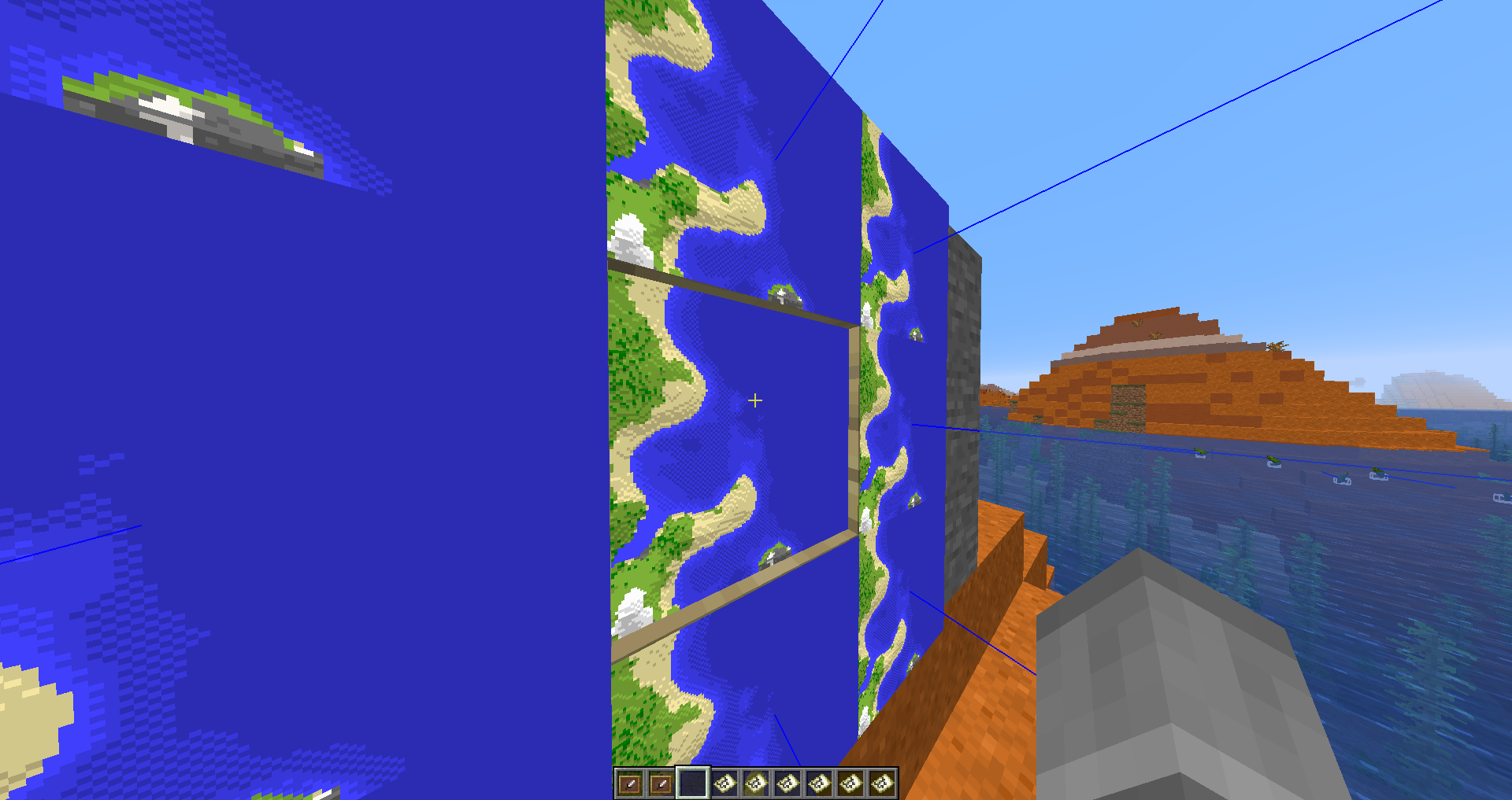 I know this doesnt belong here but as I am already Talking About the Maps I would like to ask if you could make the Maps in invisible itemframes be set back a Little bit more. This would be very useful when creating infinity Rooms where Maps are placed on walls and ceilings to cover up blocks and create a weird space. Previously the Maps in itemframes had the Edge on them which they still have, but when using invisible ones the Map seems to be set back a bit further on the wall, as seen on Picture 3 "itemframes". The middle map is placed in an invisible itemframe. This is probably intentional to stop it from Looking like its hovering. As seen in "itemframes2" there is still a little red sand shining through. I am asking if you could set back the maps in invisible itemframes a fraction more to remove the gap on corners. It would make it possible to retexture blocks for example if the maps would only just cover the blocks and would make infinity mazes possible becuase you could then not see the corners anymore.