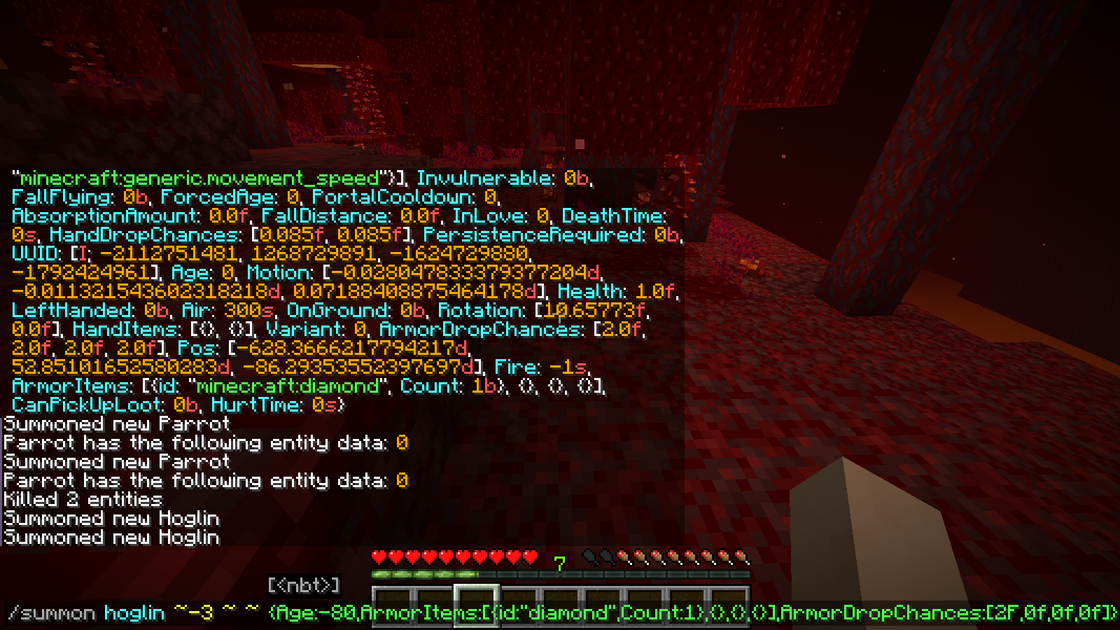 /summon hoglin ~ ~ ~ {Age:-100,ArmorItems:[