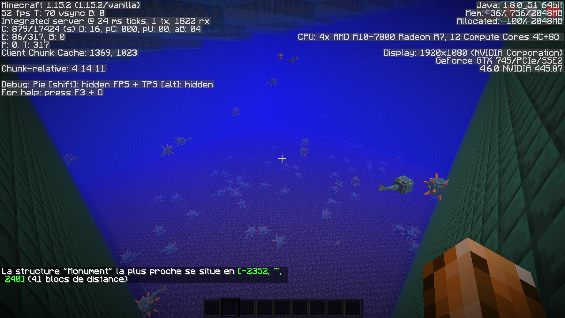 The ID of structures changed to be fully in lower case : Monument to monument, or Fortress to fortress. The consequence is that the game does not recognize structures with the ID "Monument", so the locate command and the mob spawning (Guardians for example) is broken.