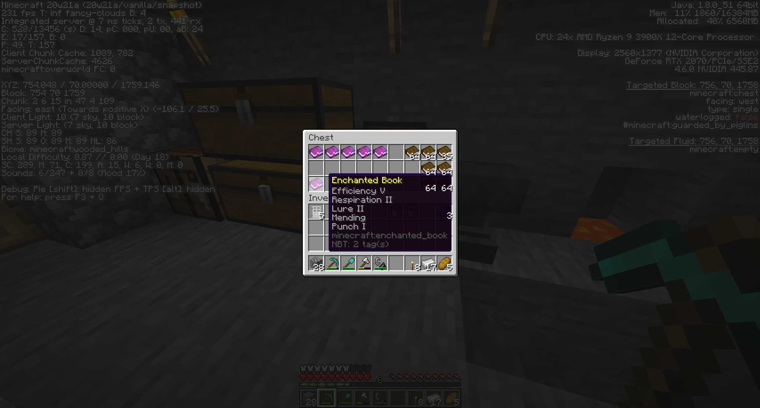 While hovering over an item in version 20w21a the tool tip appears behind the stack amount text. This happens with any item in the players inventory or in a chest.
