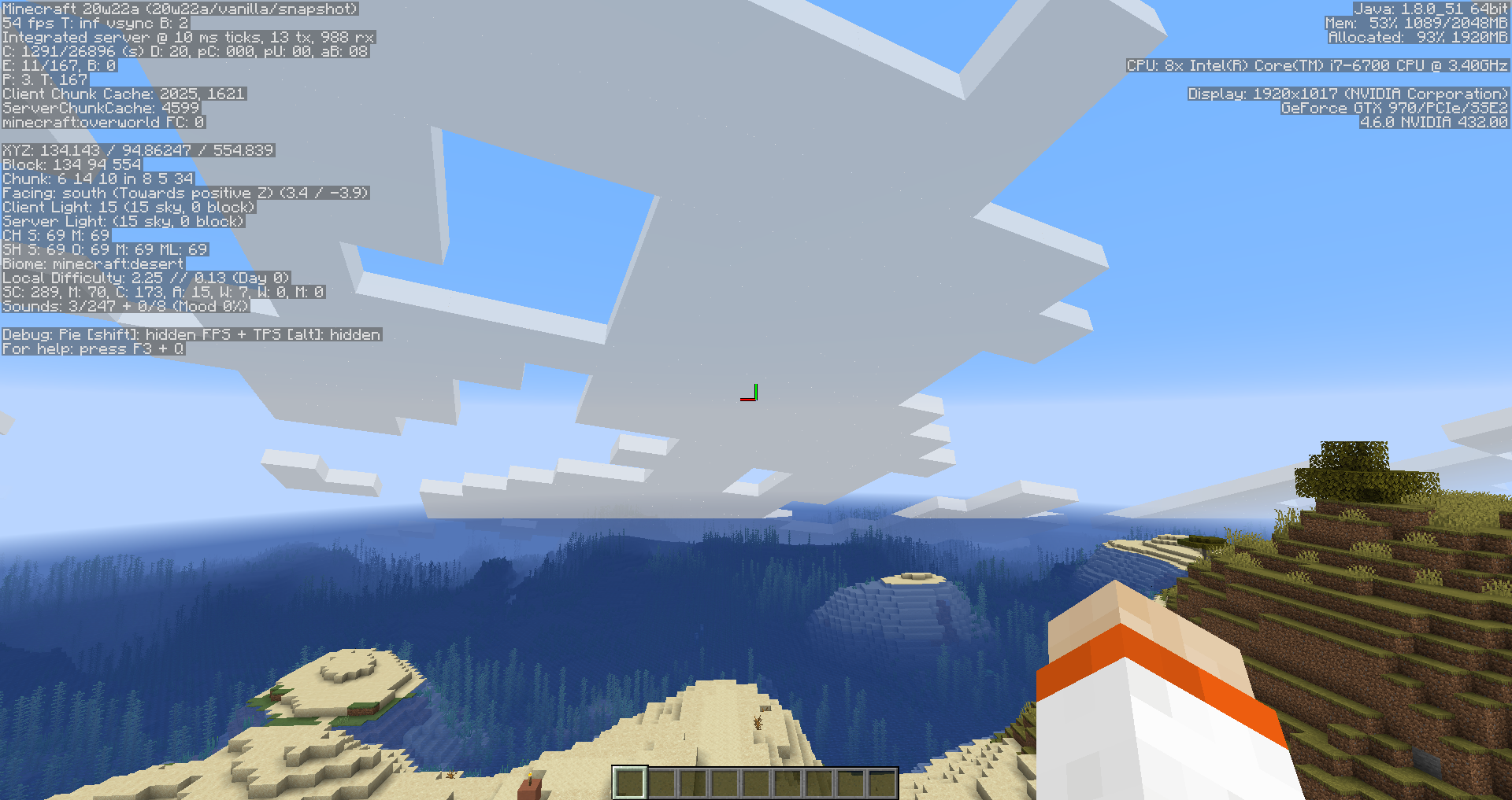 → ❌ Clouds are now permanently stuck in one position, even when leaving and entering a world.
