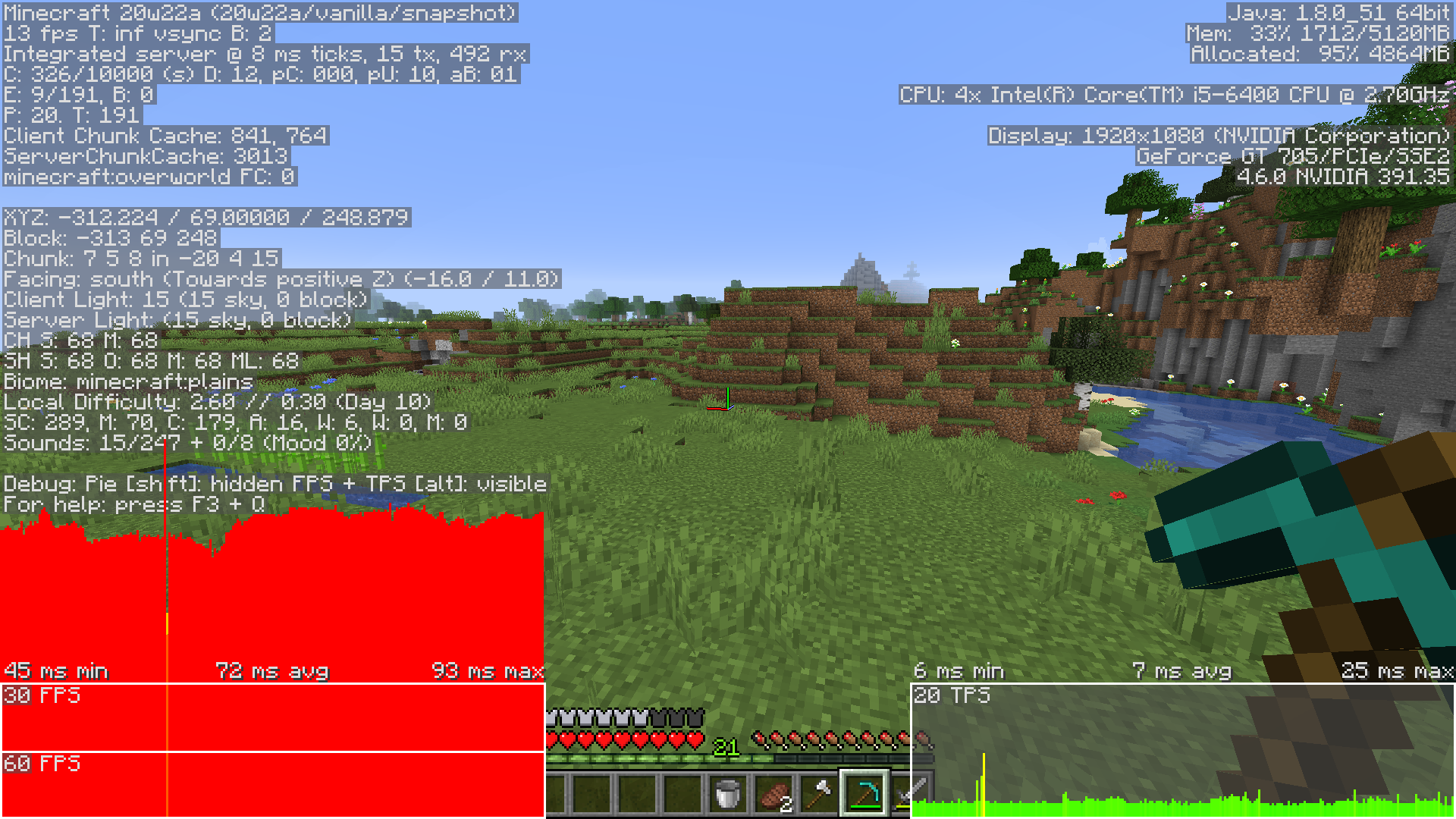 i had 20-30 fps in 20w21 which was good enough for me but as soon as i got to the latest i now got 3 or even lower, mojang please fix this