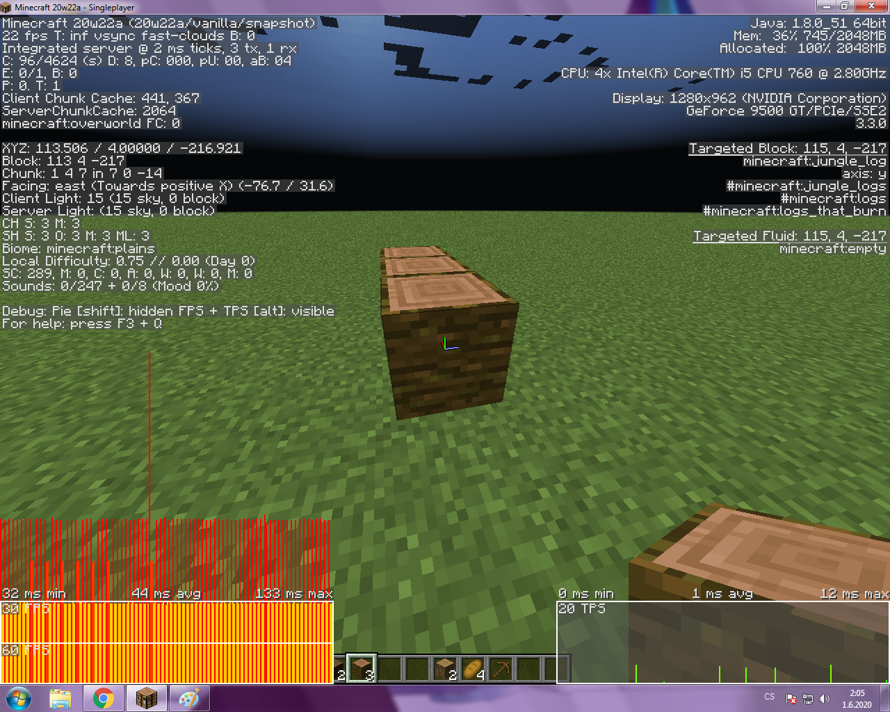 I had about 40 fps in 20w21a, which is enough and good for me. Now my average framerate is about 18. It isn't fun to play, please do something about this. Not every Minecraft player has a very strong PC.