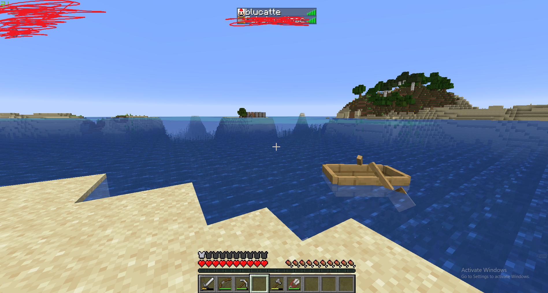 I got in a boat, went forward (in the boat) and then jumped back out, then my arms disappeared and i could only mine blocks and could not interact with anything else, as if i was moving im the boat. (Local multiplayer)