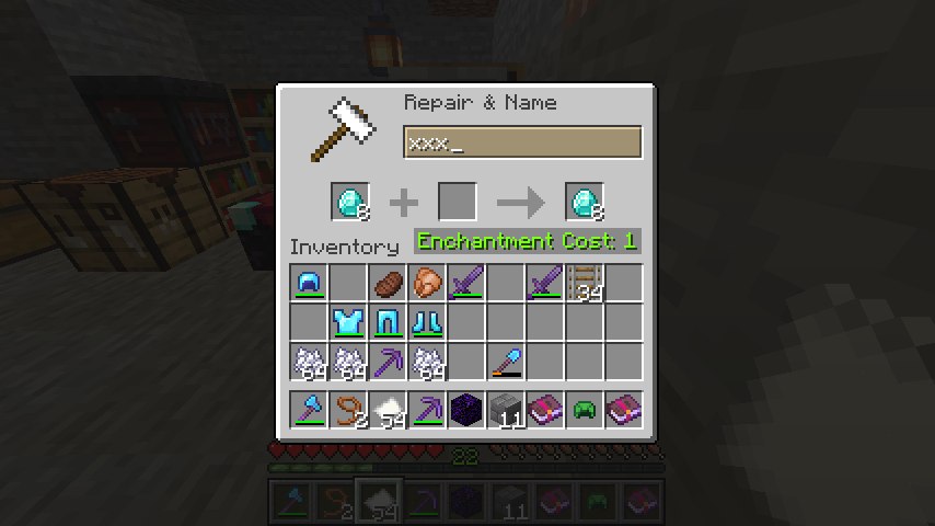 The caption of XP in the anvil’sUI ever shows “Eachantment Cost:XXX”,although player use it to repair or name.