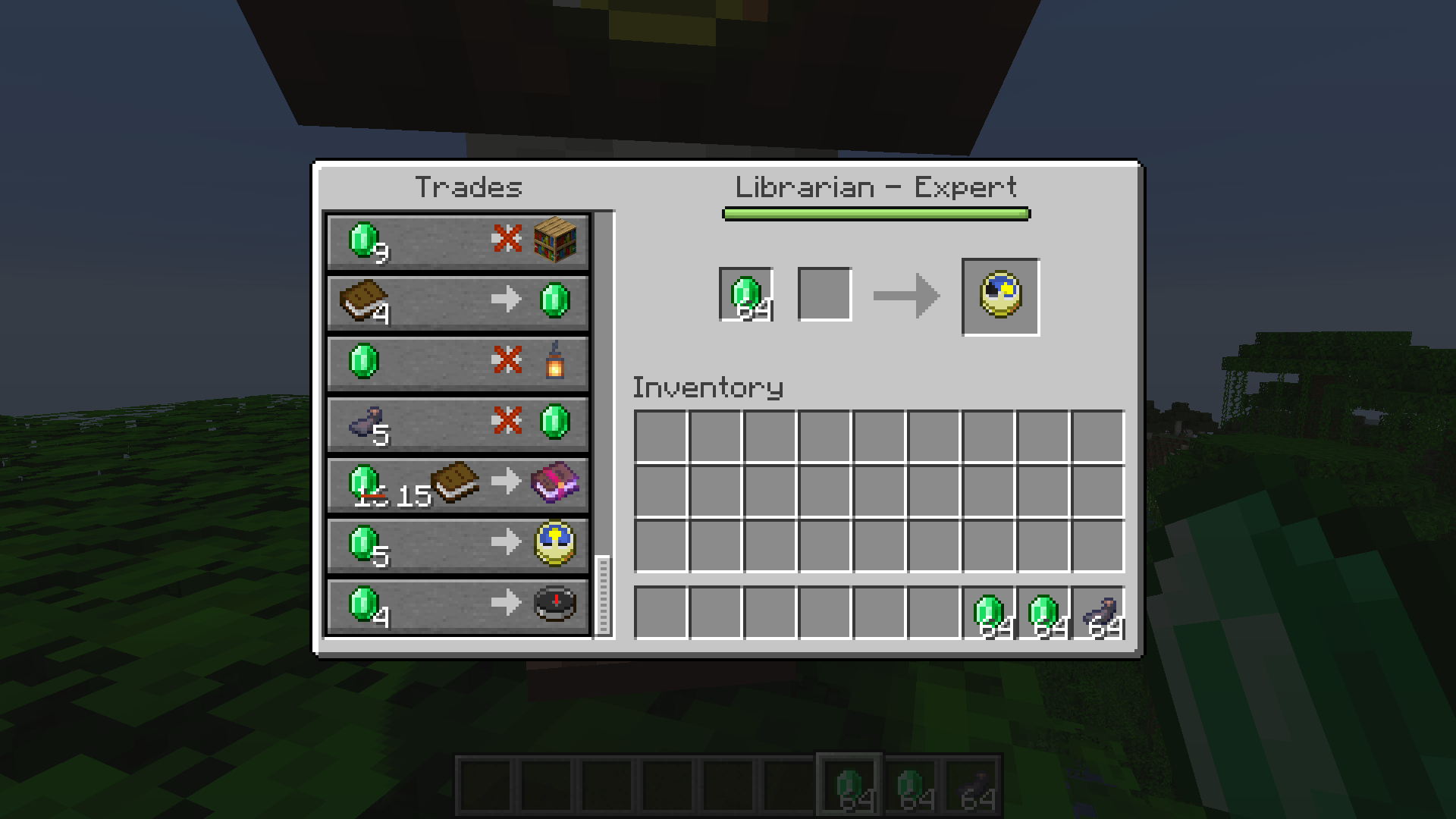 Take note as to whether or not compasses/clocks function in villager trading output slots.
