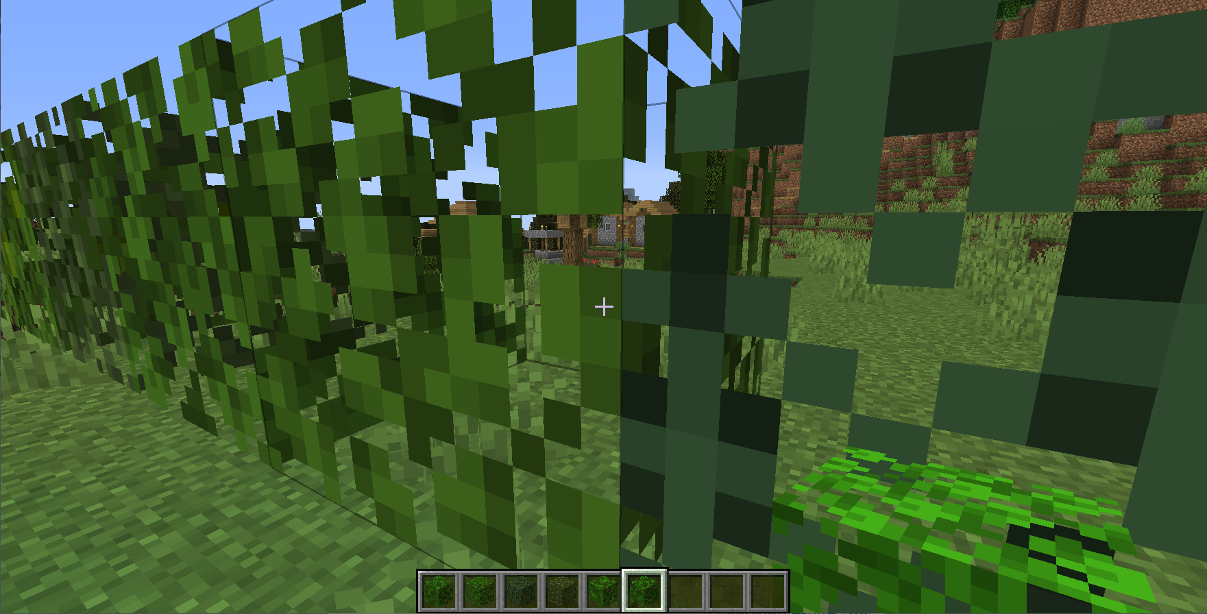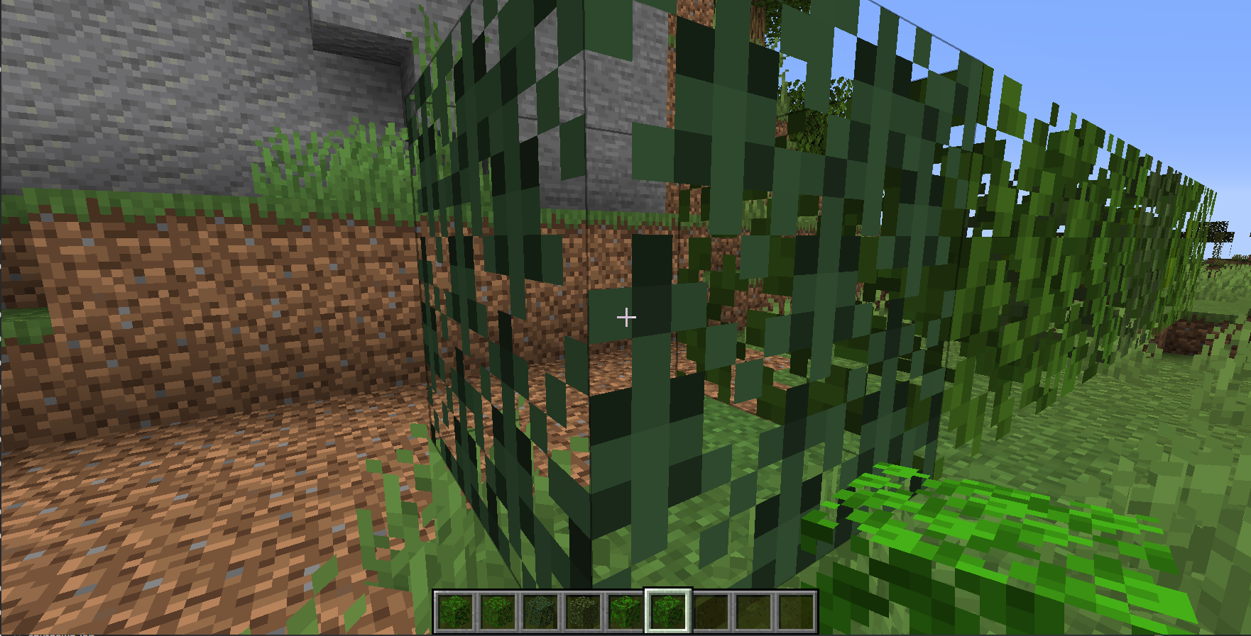 When looking through a leaf block of any type, the opposite face(s) are fully transparent and show no texture. This is plainly visible on the item itself also.