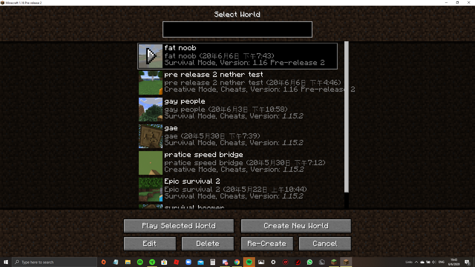 My pre release 2 world's nether portal still crashes.