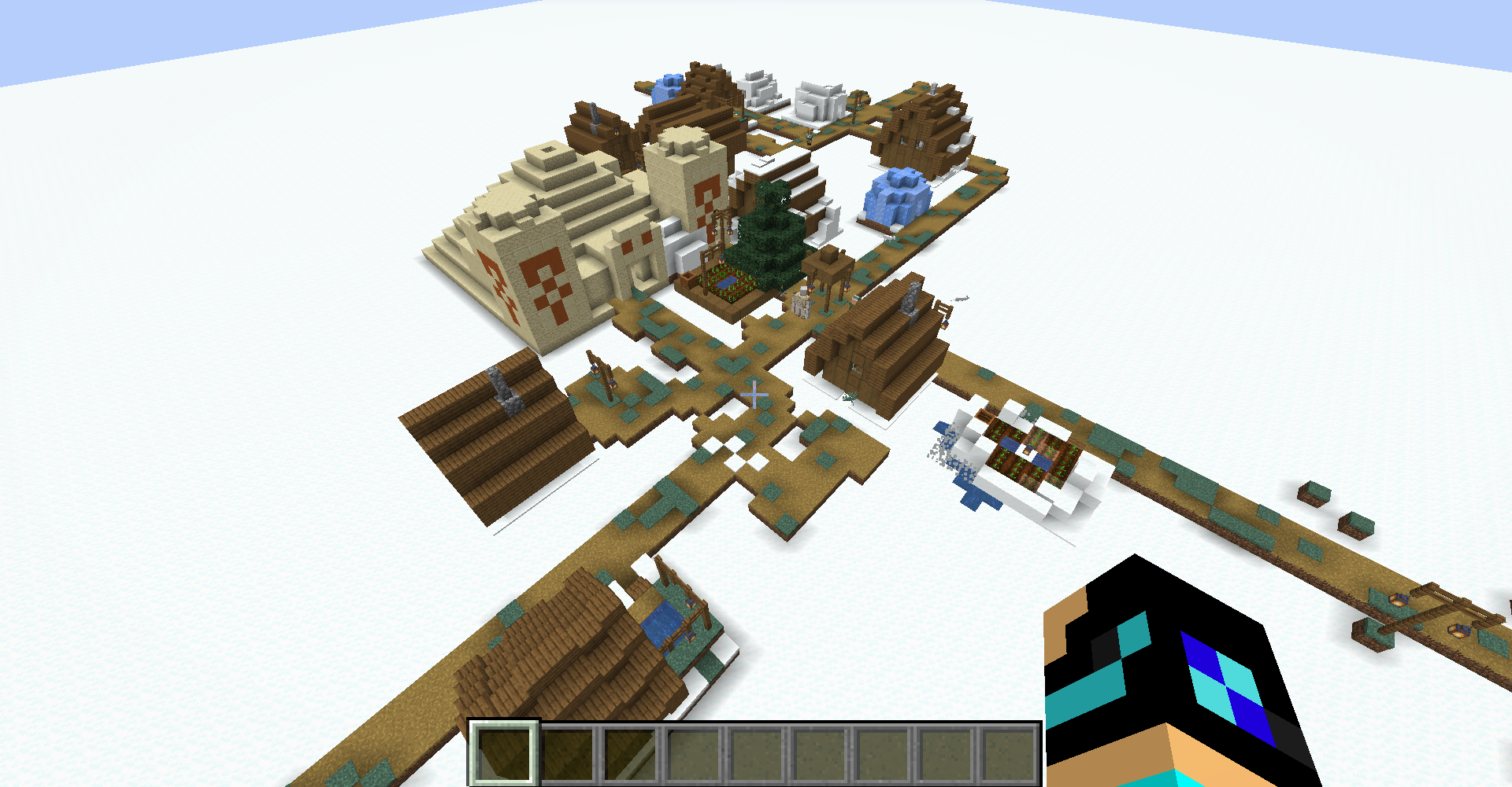 if you create preset snowy kingdom and then locate vilage you may found piramide
