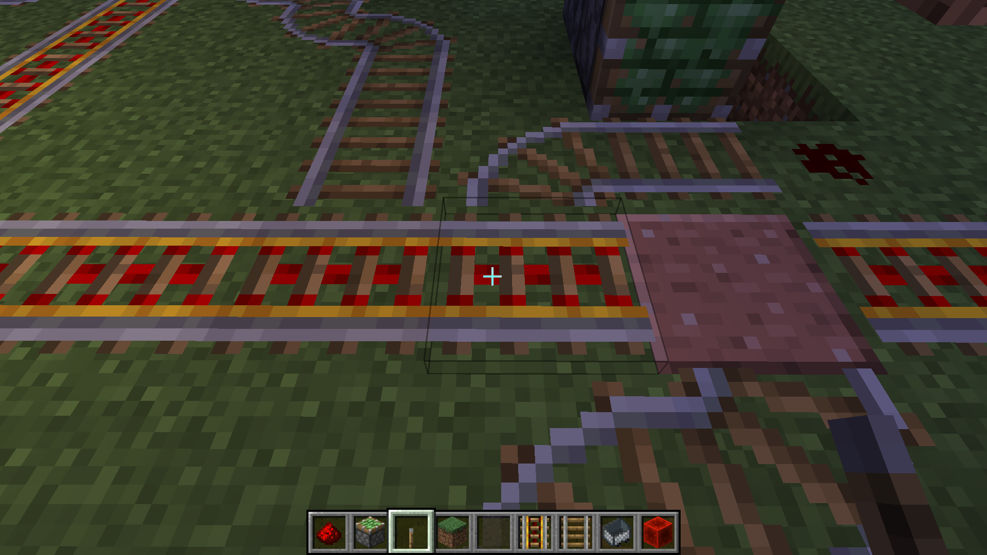 I am looking north. The curved rail near the center of the screenshot is supposed to be an east-west rail, but after the sticky piston extended and then retracted, this rail became the east-to-south curved rail that you see here. It changed in an attempt to connect to a powered rail that it can't connect to. I kinda tried to fix it by replacing the rail to the west of the glitchy rail, but then that rail also tried to connect to a powered rail. This is absolutely infuriating because it breaks things that worked perfectly a few versions ago.