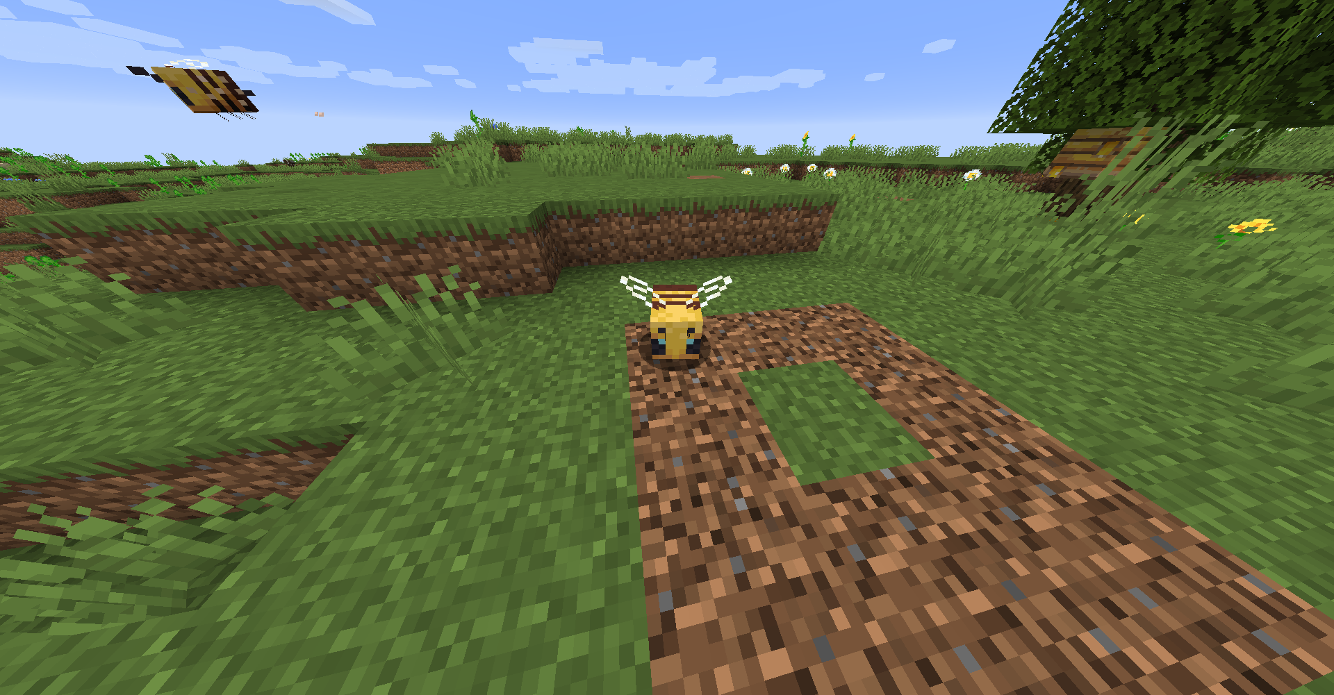 Bees in 1.16 Pre-release 2 will circle above a flower if it is blocked off on all sides. The bee will continue to do so until sunset or it is broken.