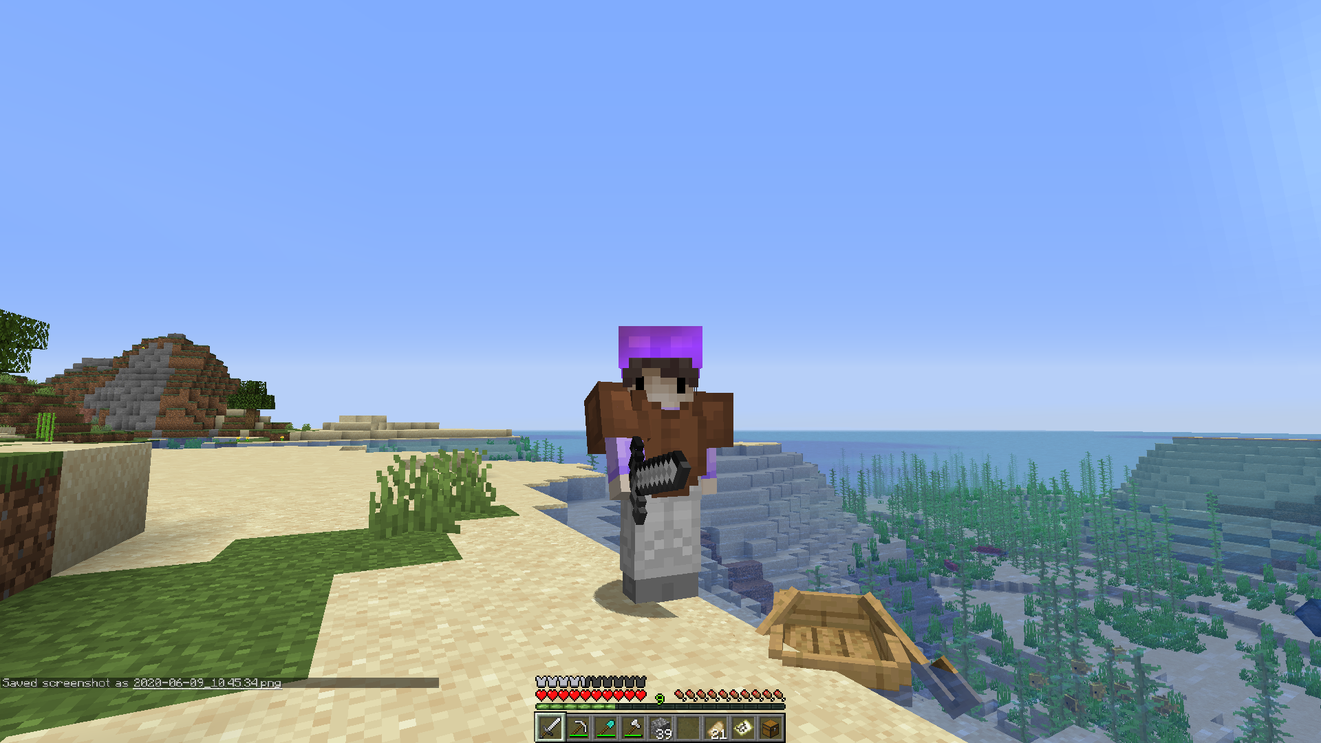 When leaving a boat, holding w and left shift will create the character's arm to not appear, and not allow the player to right click any interactable items, such as the boat again or a chest.