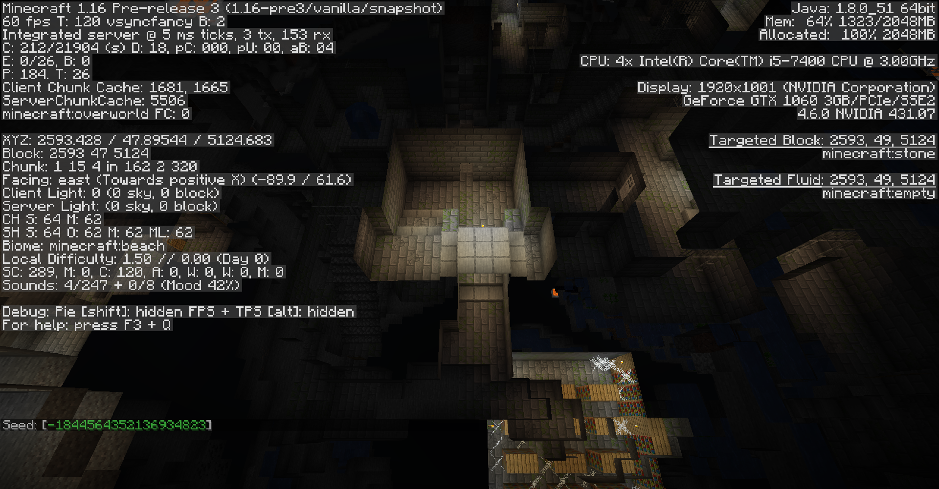 Generate a world with the seed provided above and teleport to the given coordinates.