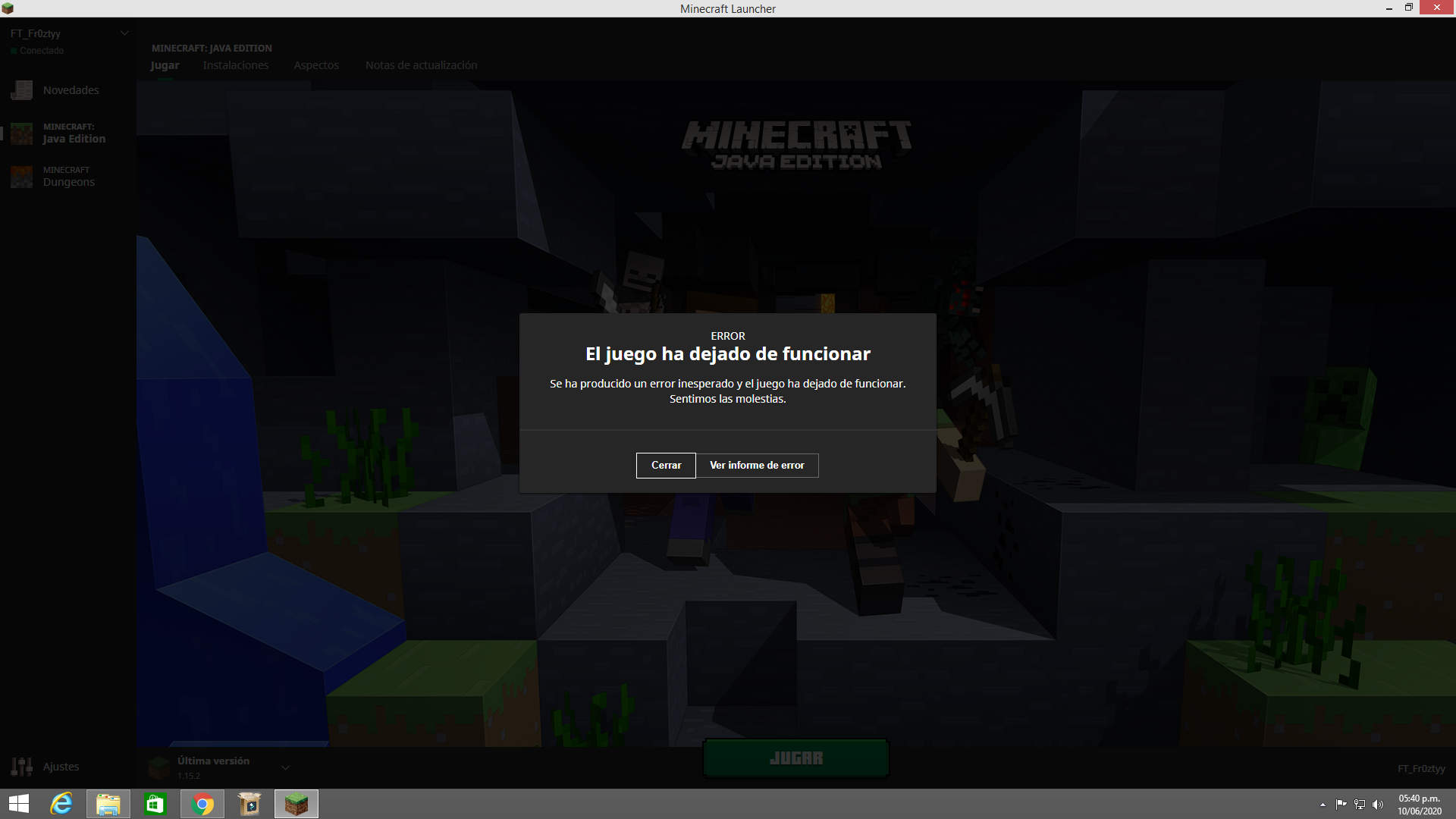 Please attach the crash report found in [minecraft/crash-reports/crash-<DATE>-client.txt|https://minecrafthopper.net/help/guides/finding-minecraft-data-folder/] here.