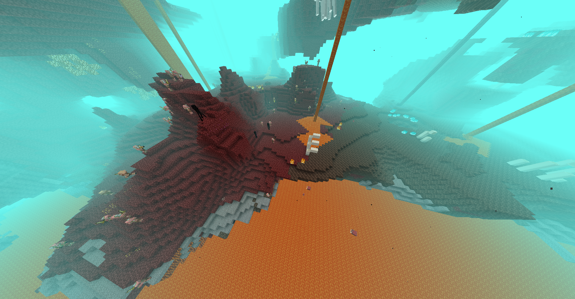 The Soul Sand Valley biome in the Nether dimension seems to spawn very little to no mobs, especially comparing to neighboring biomes. On the screenshots provided you can see a ridiculous amount of mobs in the Nether Wastes right next to an empty Soul Sand Valley. Fortresses in Soul Sand Valleys are the opposite way, producing an insane amount of Fortress mobs.