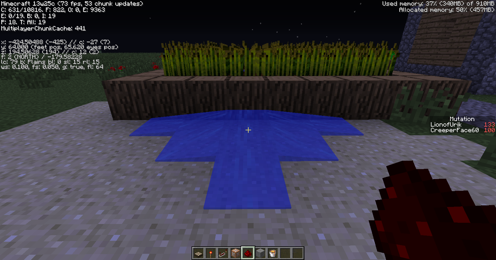 I went over to a village I found in my flat world and I went over to a farm and found flowing water without a Source block to support it