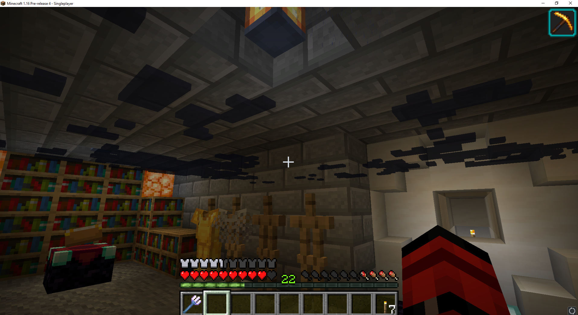 It appears that the "Fabulous" setting is now considering "Air" to be a transparent block which is causing clouds and rain effects to appear inside built buildings. See attached screenshot.