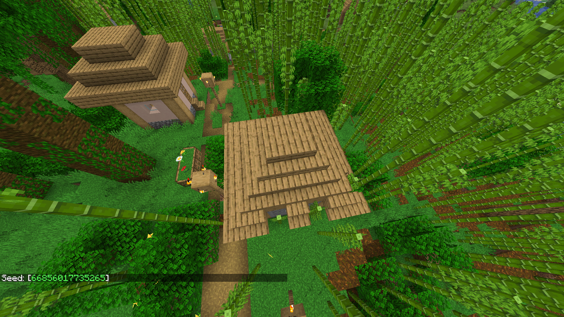Bamboo cuts through naturally generated structures like villages and jungle temples when these structures generate through the bamboo jungle biome or meet the biome.