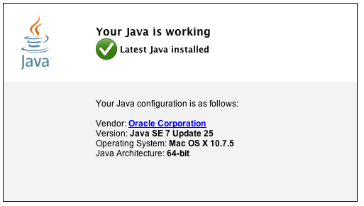 Your Java version is out of date. Please update your Java to the latest version (1.7.0_25): http://www.java.com/en/download/. Keep in mind that when using a 32-bit browser on a 64-bit OS the automatic version detection will only show the 32-bit version of Java, the 64-bit version needs to be downloaded manually: http://www.java.com/en/download/manual.jsp.