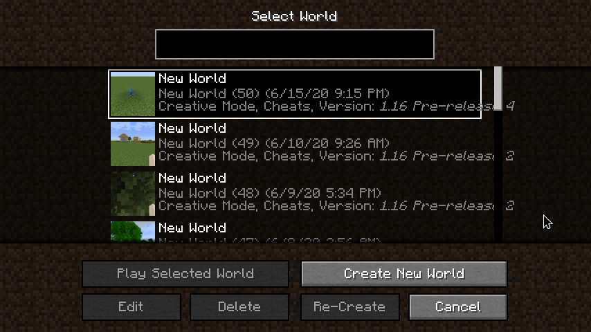 Go to the Select Worlds screen