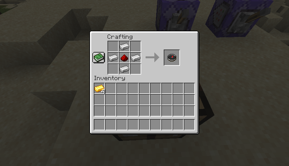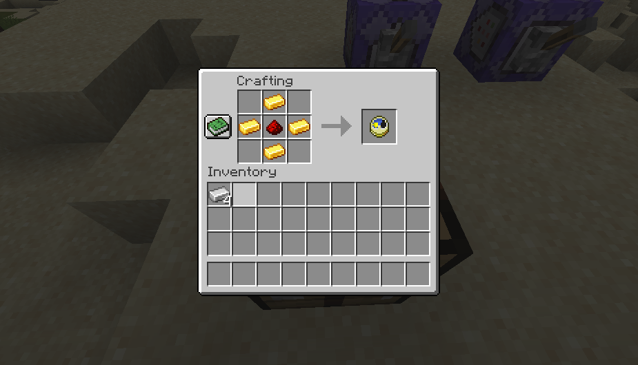 Open the Crafting Table, and then either use a Recipe Book to or manually create either a Compass or a Clock.