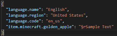 you cannot use Raw JSON text in a resource pack's lang files. Only §r doesn't work all other colors/formats that use § work. could make it where [MOTD unicode|https://minecraft.tools/en/color-code.php] will also work in any lang file instead of §