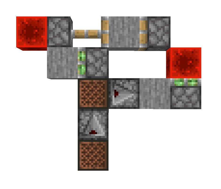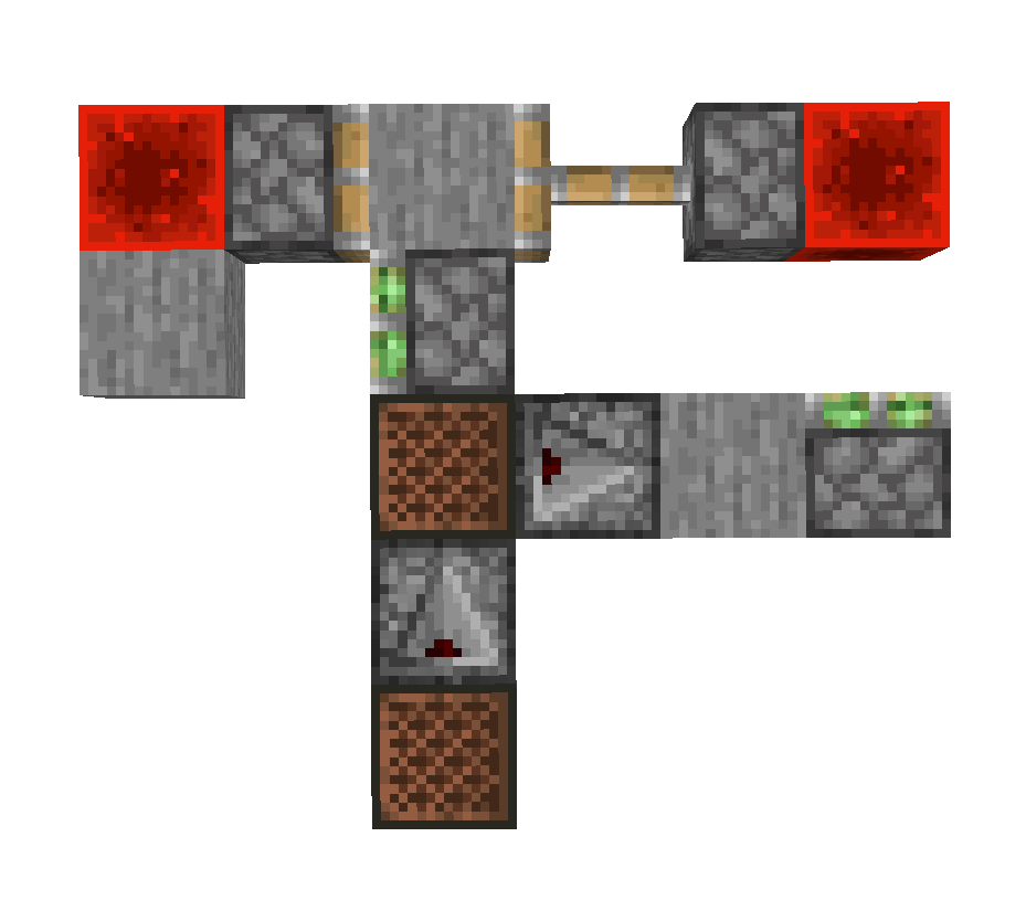 Observers do not give out updates when retracted by a piston that is facing the same direction as the observer. To recreate, build pictured. In the block update testing circuits, place the redstone block at the top left last. Trigger using the noteblock at the bottom. The smaller circuit exhibits strange behavior after repeated triggers. Interacting with the fence disconnects it on the client. The same behavior is observed in iron bars, walls, etc.