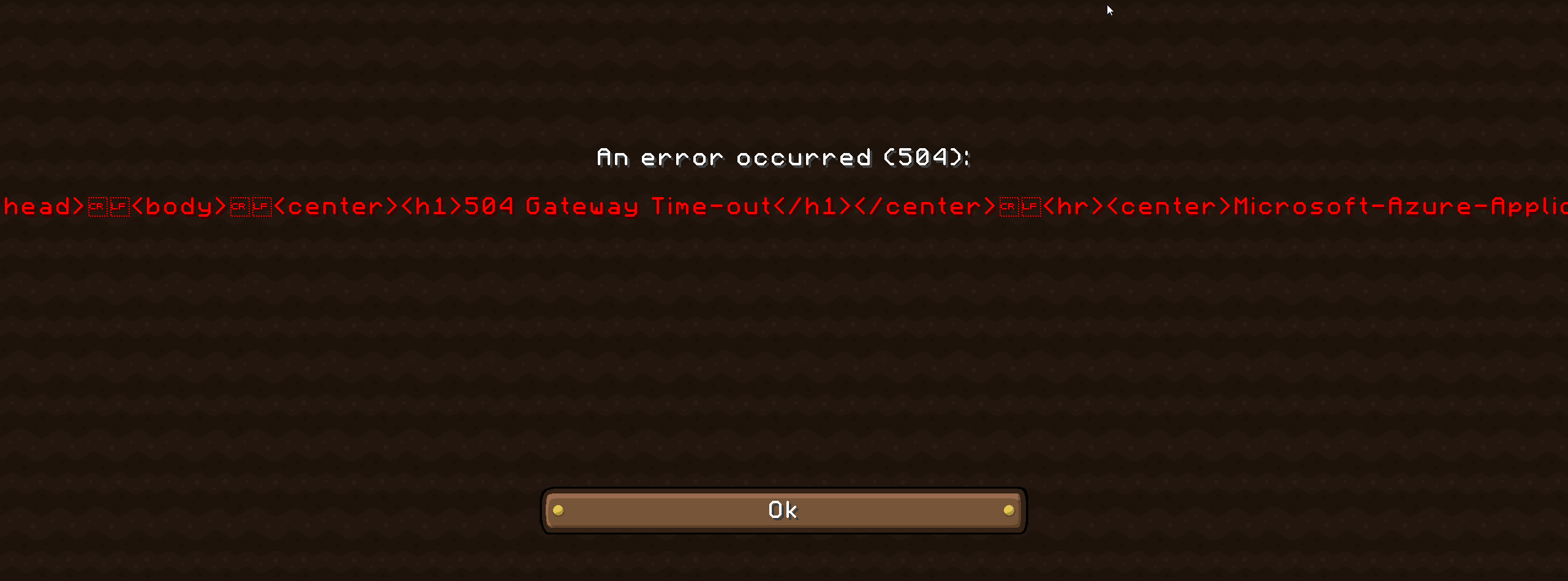Still getting alternating 500, 502, and 504 errors. One time it gave me a 504 error, I hit "ok", then it thought for a bit and loaded the game. I played for a bit, wasn't kicked, logged out of Realms to see if I could log back in and not lose any progress, and then got the 500 & 504 error again.