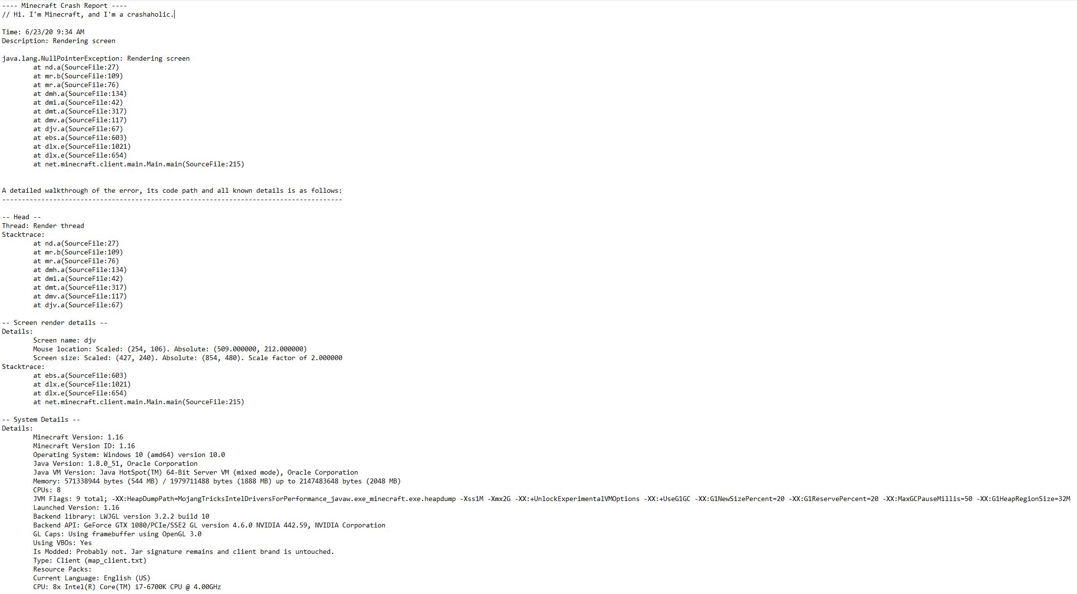 java.lang.NullPointerException: Rendering screen