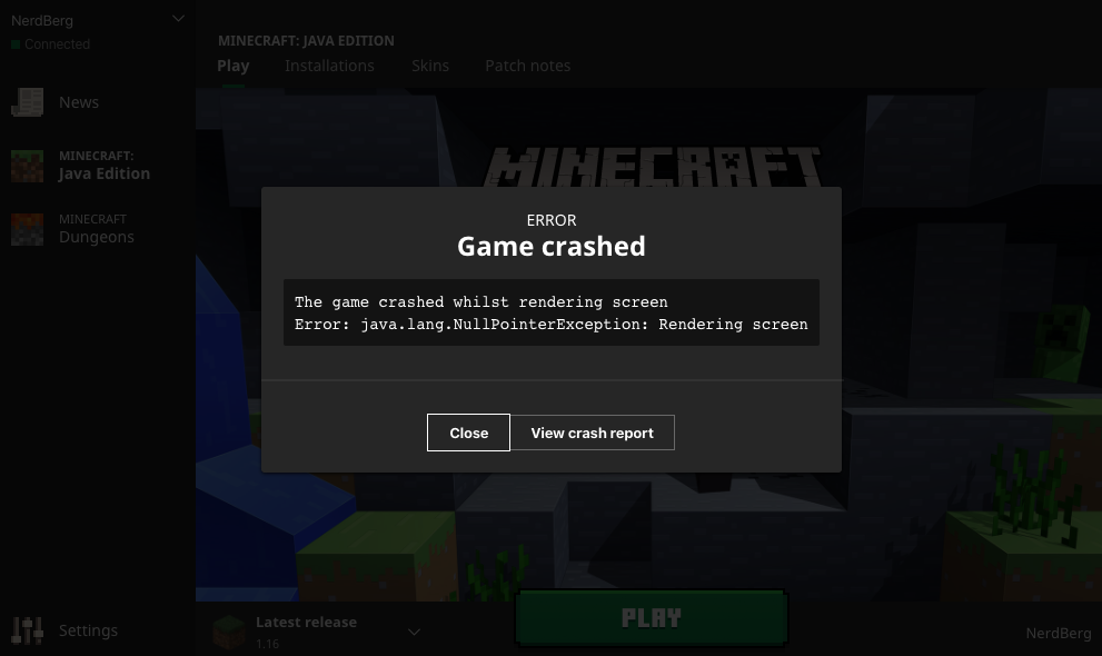 This morning when 1.16 dropped, I went onto a realm that my some of my friends play on. As soon as I clicked the Minecraft Realms button at the bottom of the screen, it said saving world and crashed.